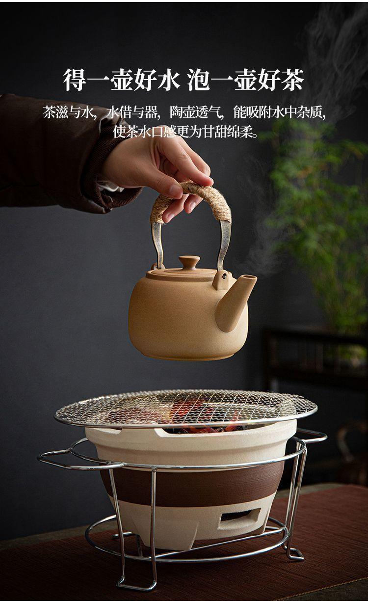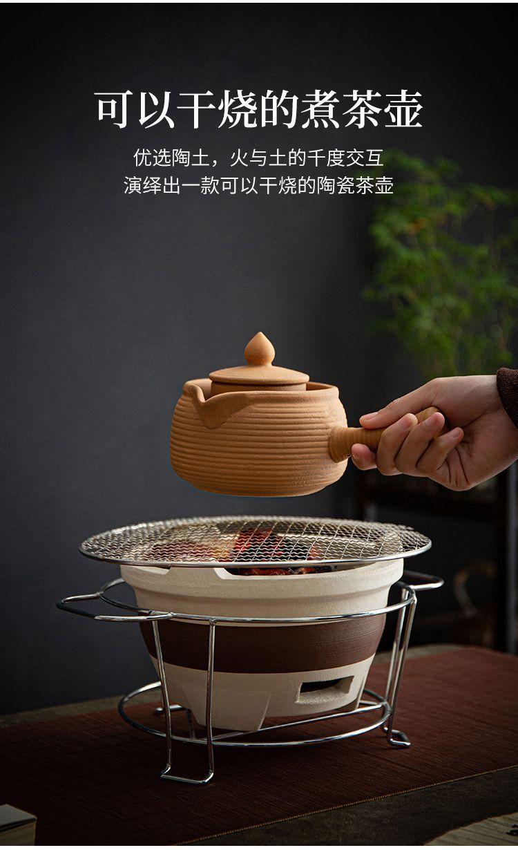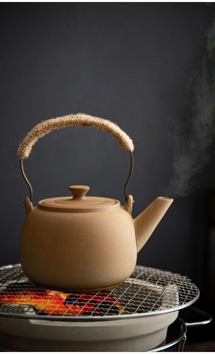Tetera con asa lateral para té y leche, tetera de carbón para exteriores de estilo chino, tetera de fuego abierto resistente a altas temperaturas