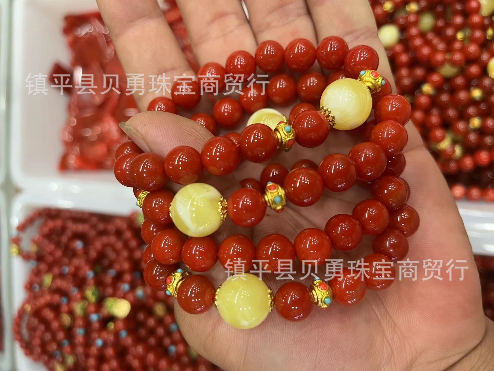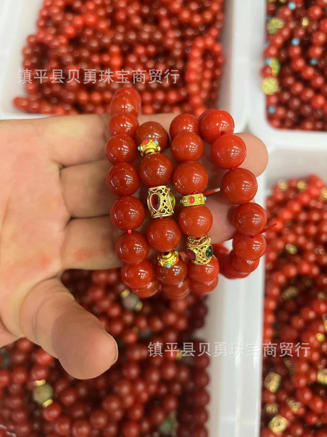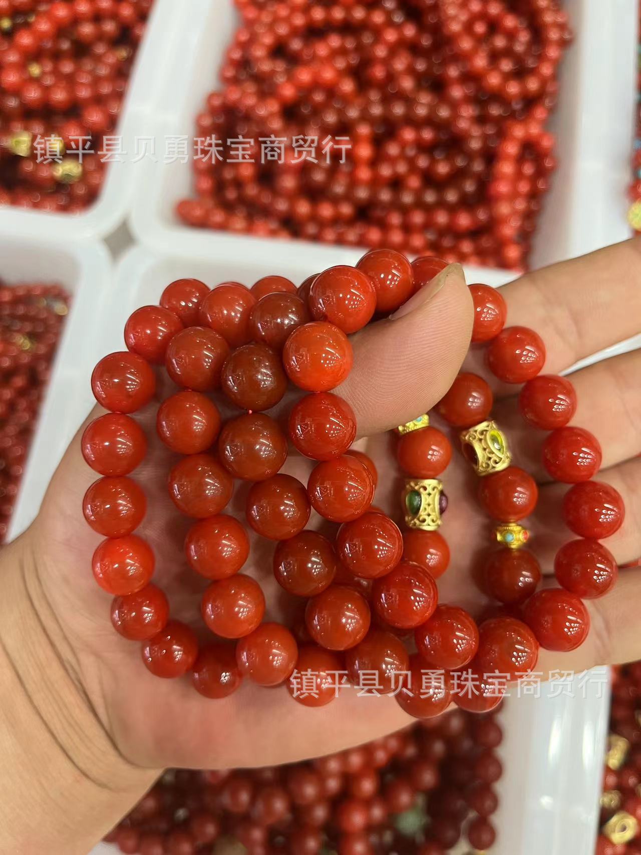 Venta al por mayor de fábrica pulsera roja del sur natural rojo caqui carne Liangshan fidelidad pulsera de ágata roja de alta calidad