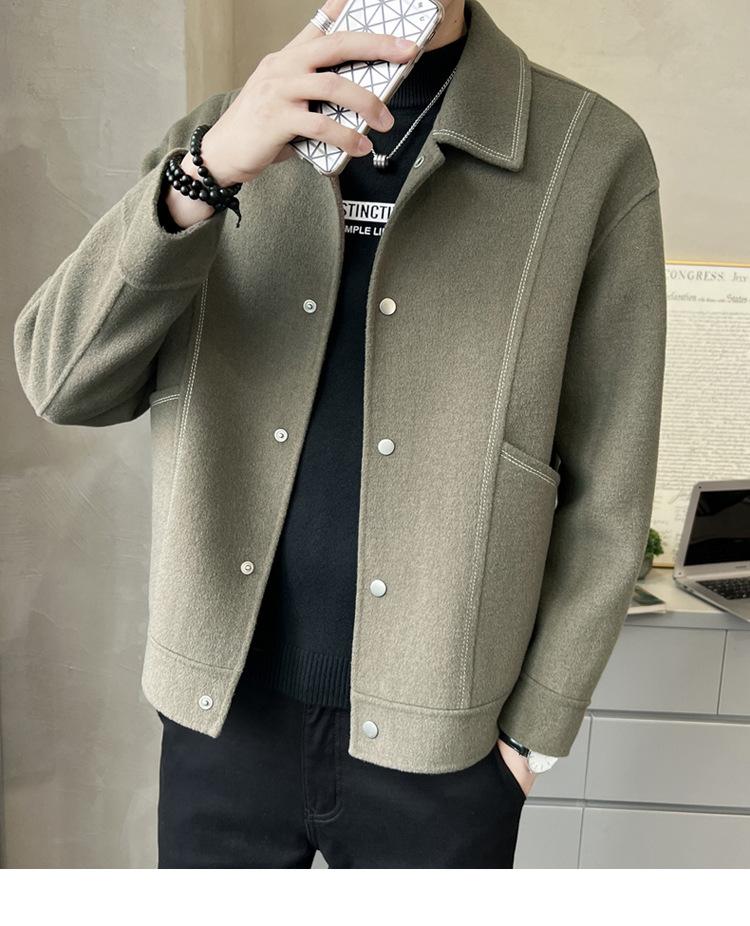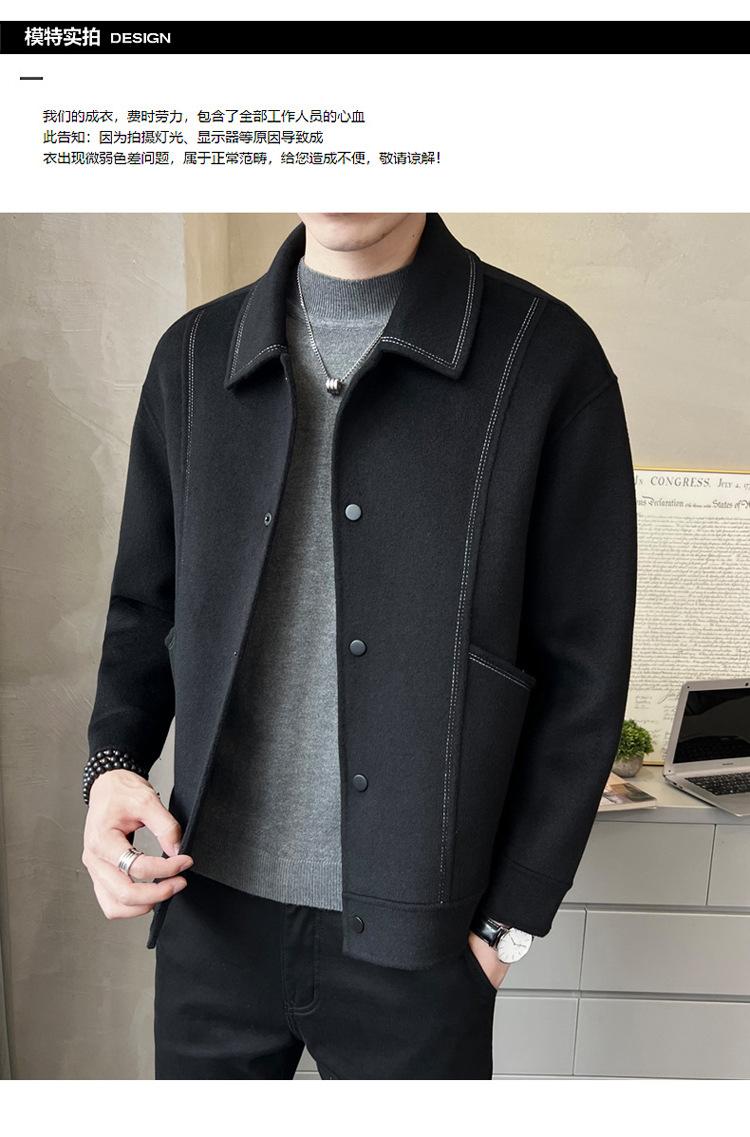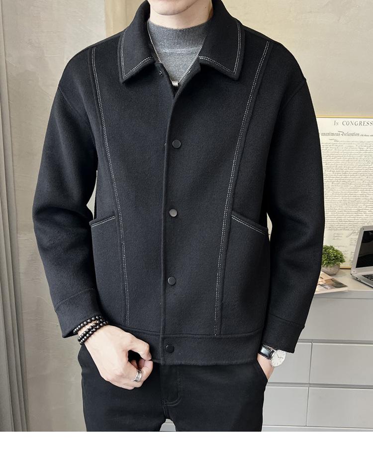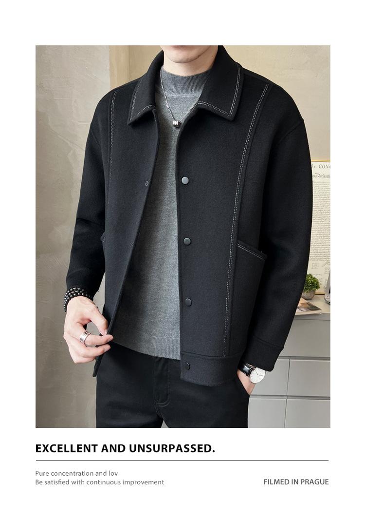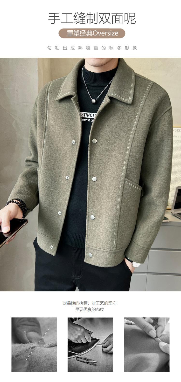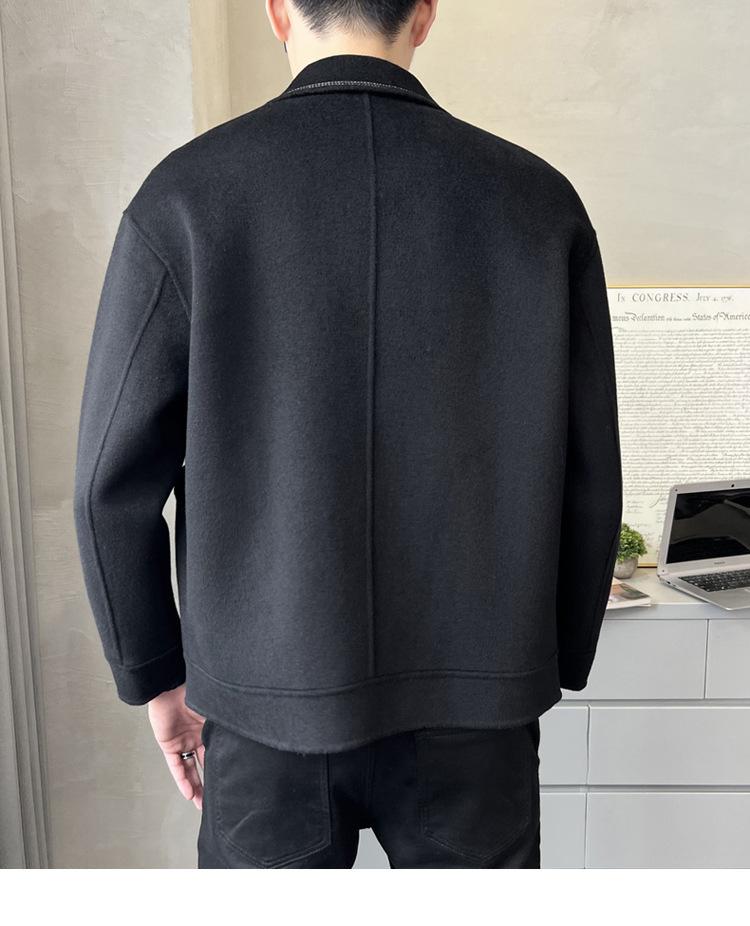 Abrigo de cachemira corto de doble cara hecho a mano para otoño e invierno, chaqueta de moda para hombre, abrigo de lana de doble cara