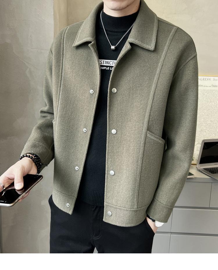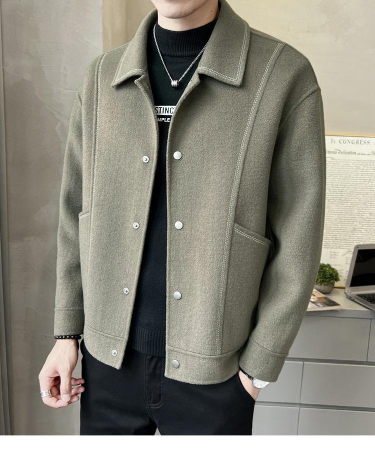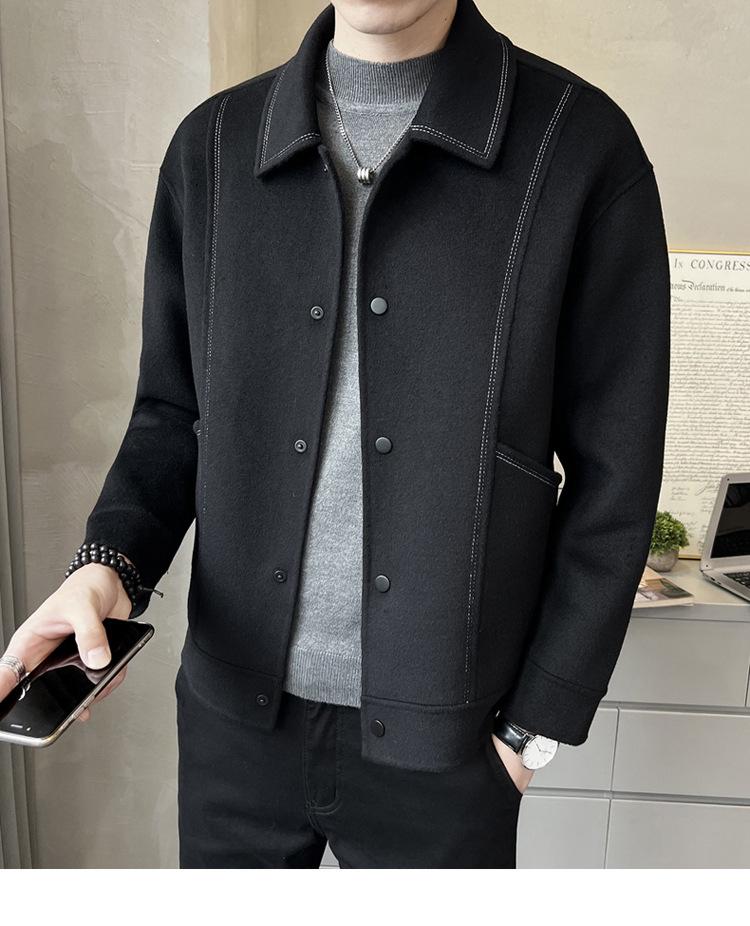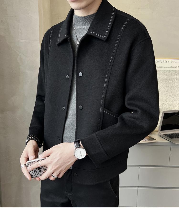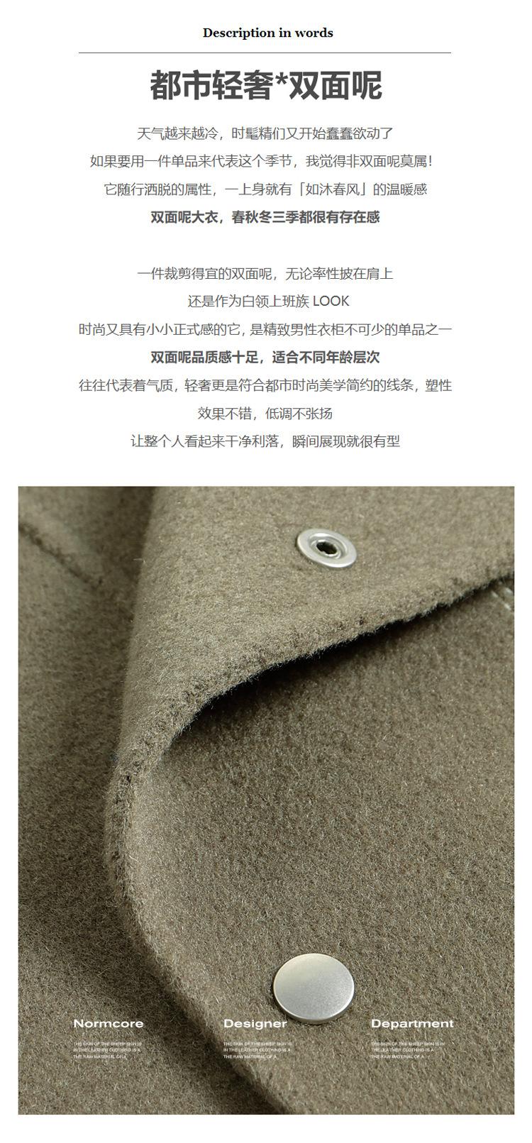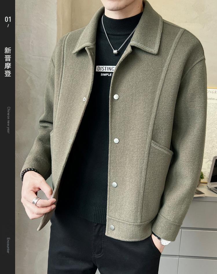 Abrigo de cachemira corto de doble cara hecho a mano para otoño e invierno, chaqueta de moda para hombre, abrigo de lana de doble cara