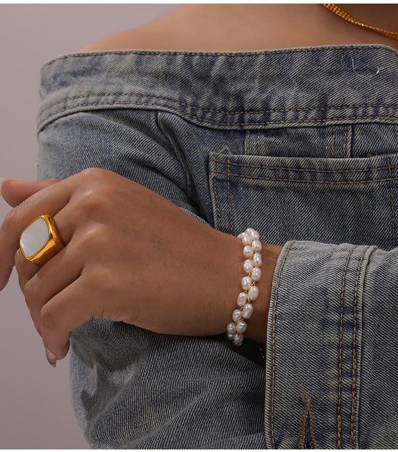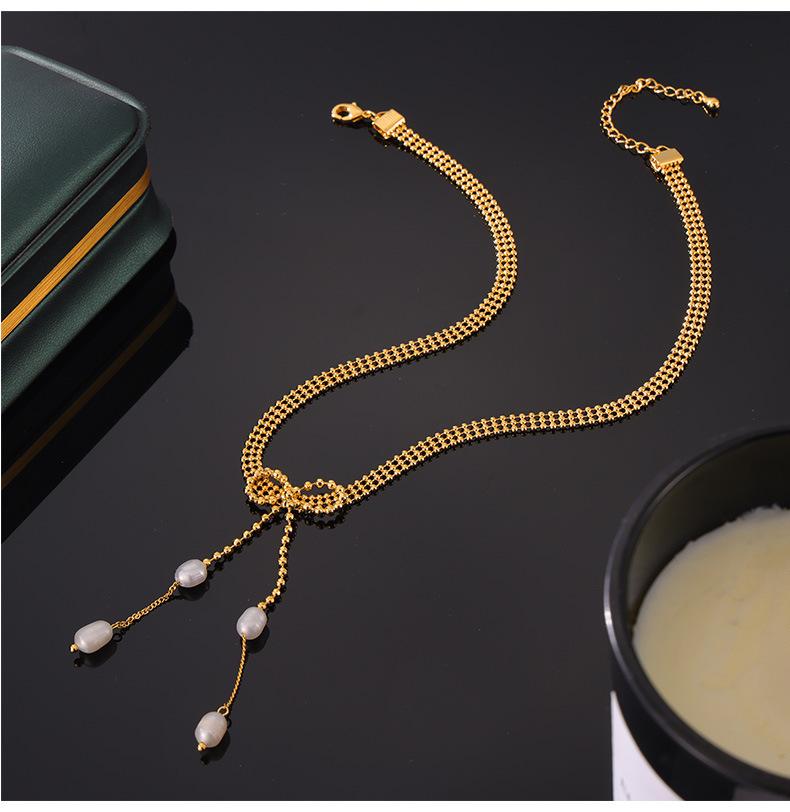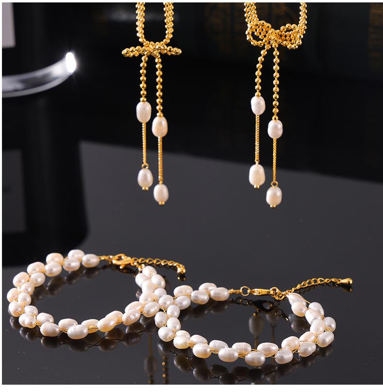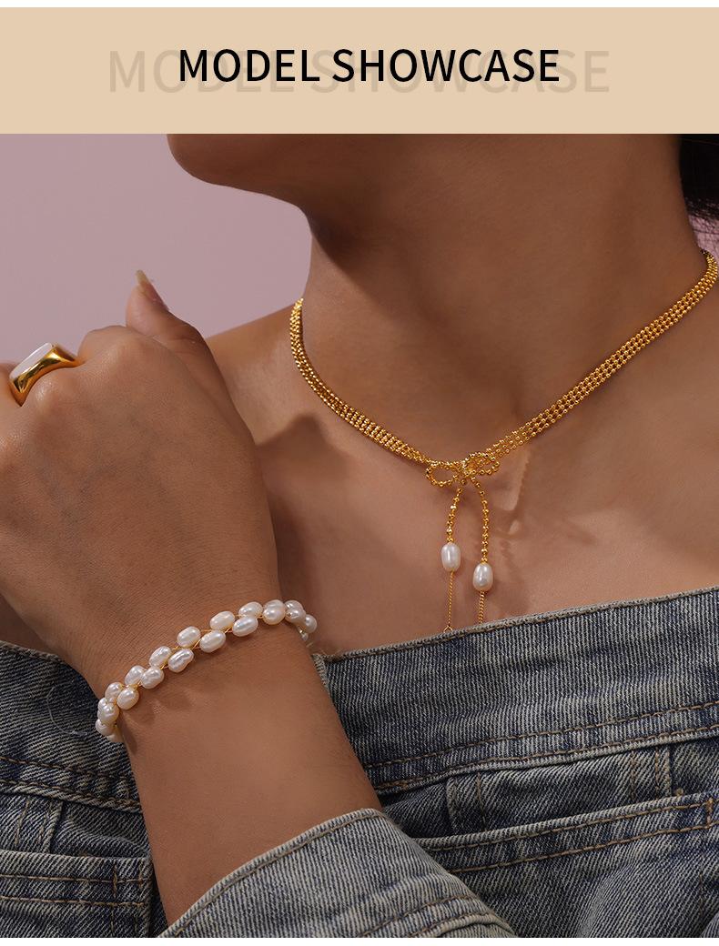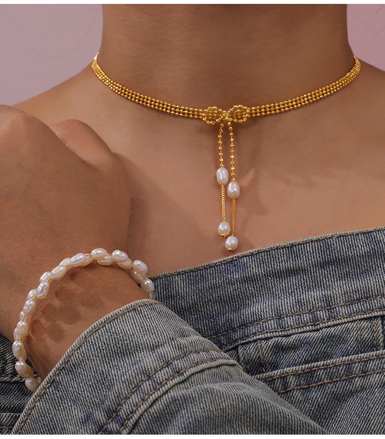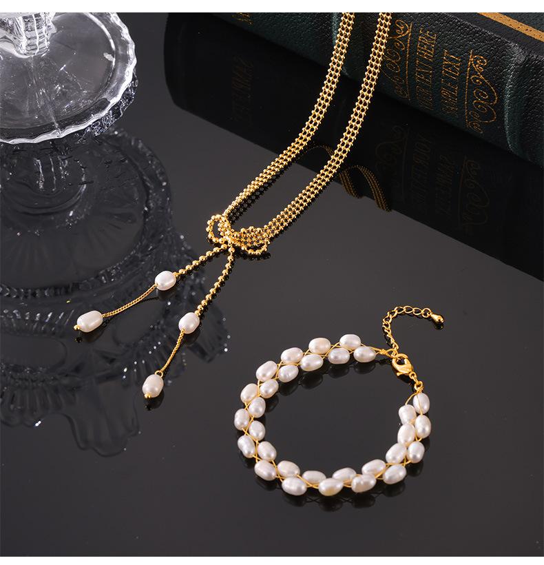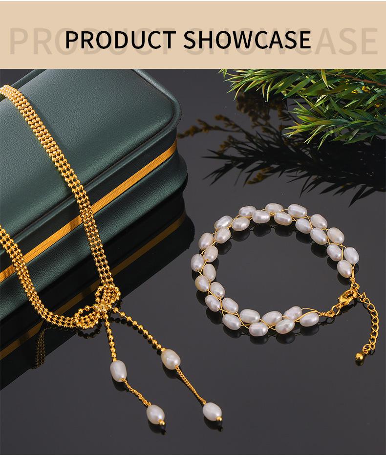 Pulsera de perlas de agua dulce con temperamento elegante y nuevo de Europa y Estados Unidos, material de cobre chapado en oro de 18 quilates, traje de collar en stock al por mayor