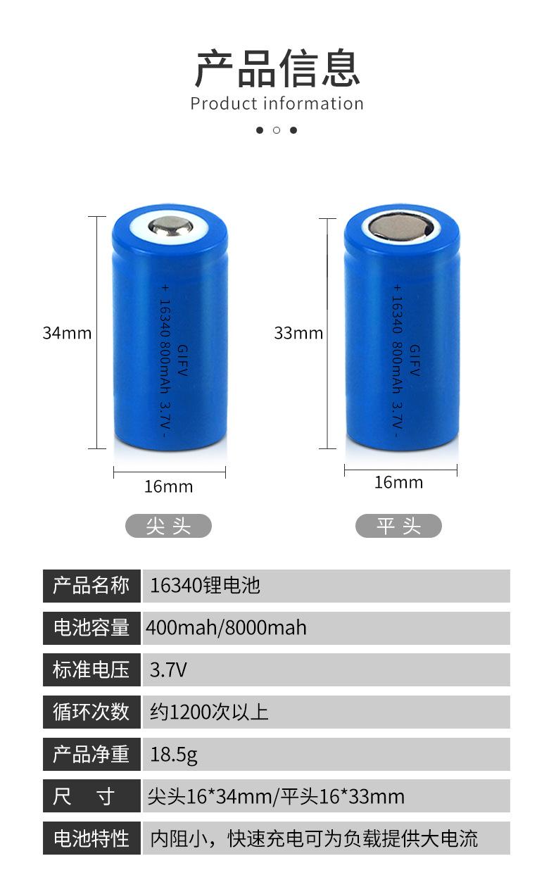 16340-400 mA [pointed]], 16340-800 mA [pointed]], 16340-800 mA (flat head)