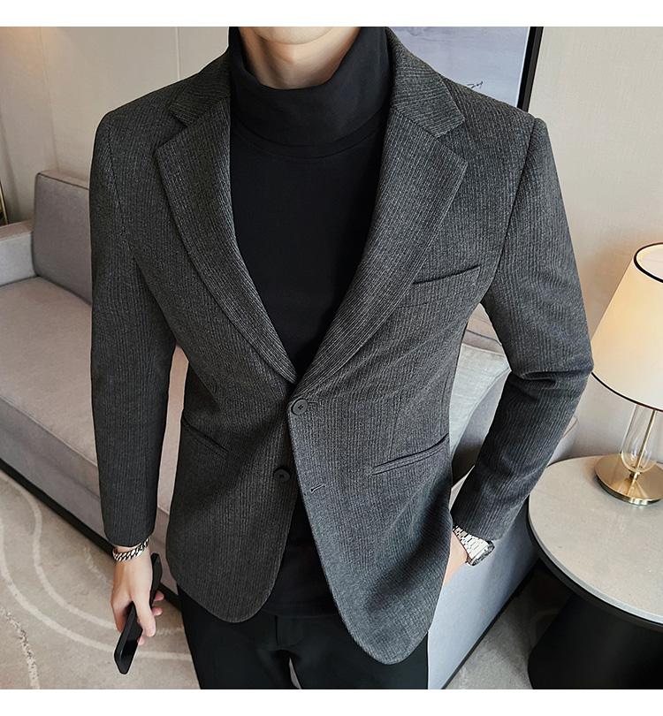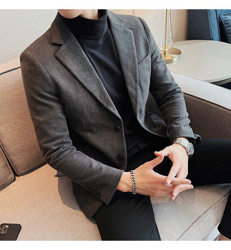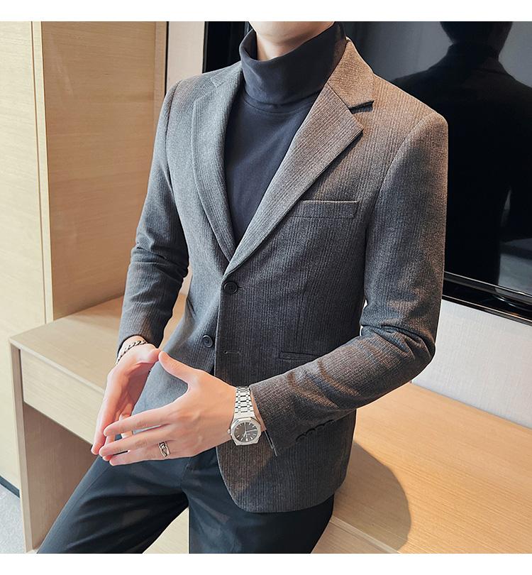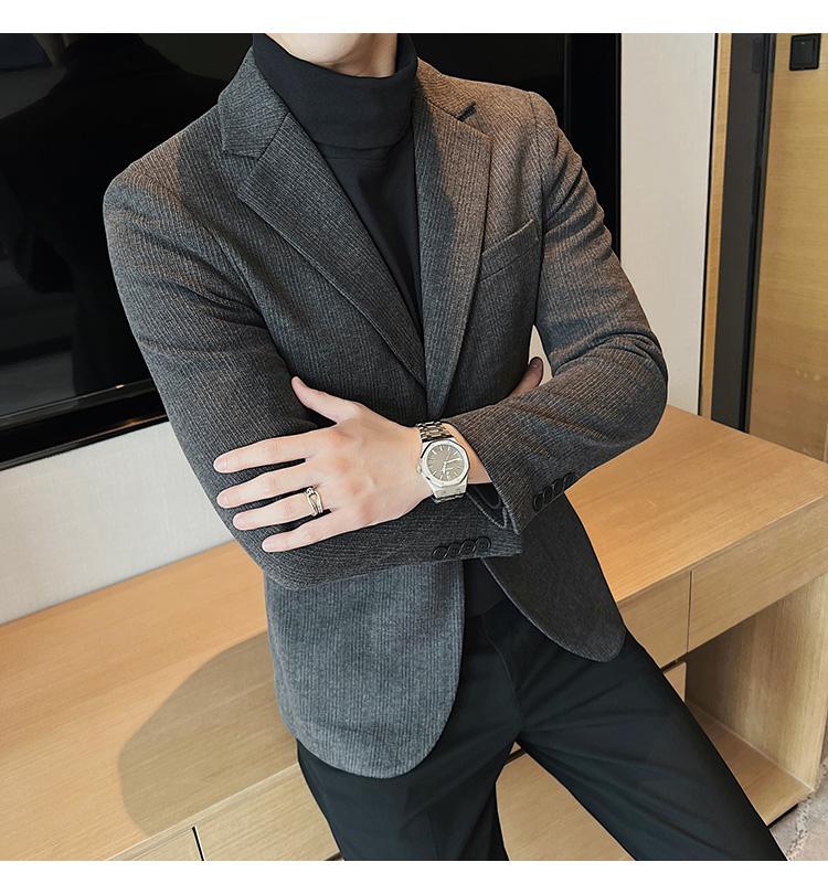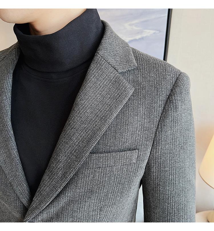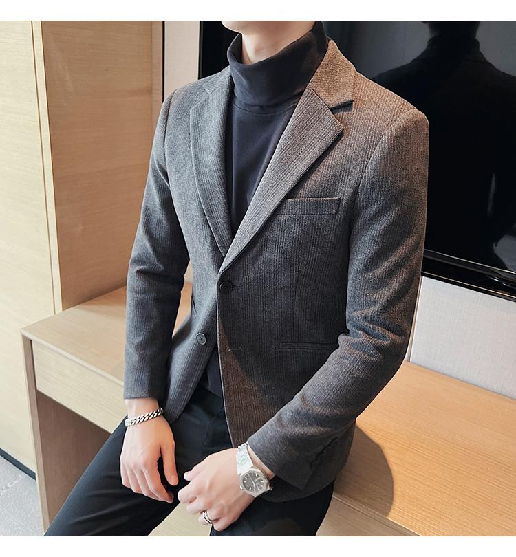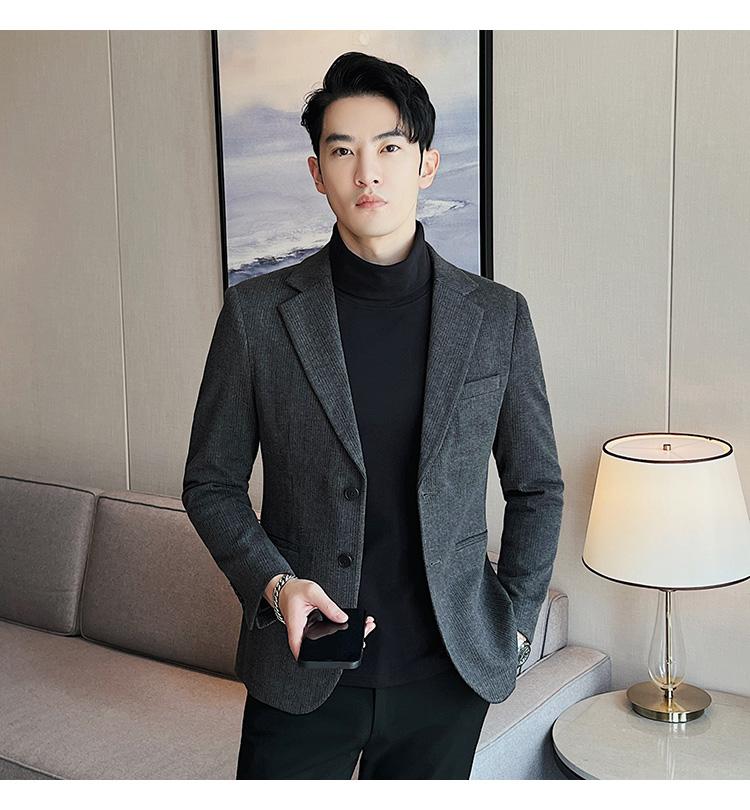 Traje de otoño e invierno para hombre, estilo coreano, abrigo de lana de color sólido, rayas oscuras, estilo coreano, traje pequeño informal de moda, envío gratuito
