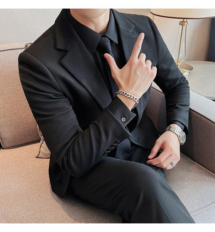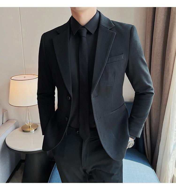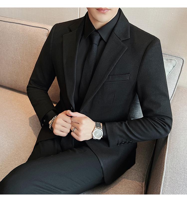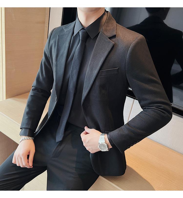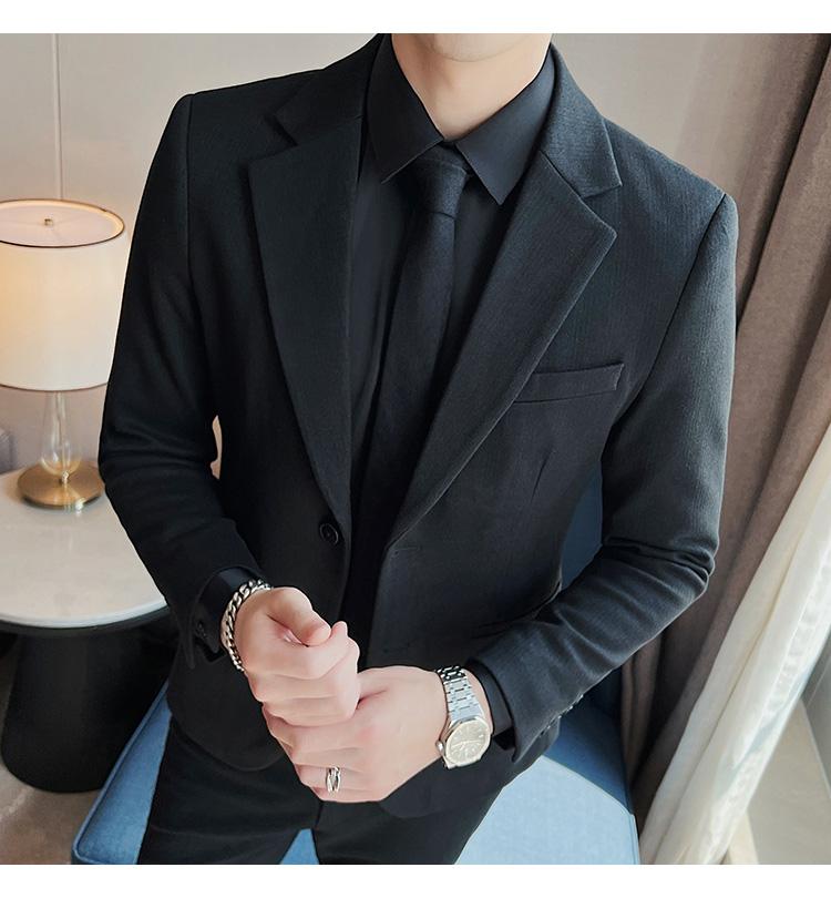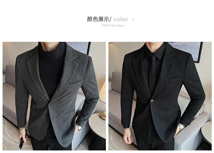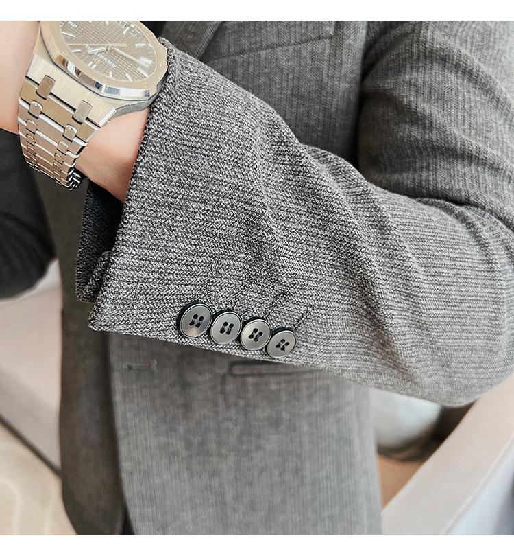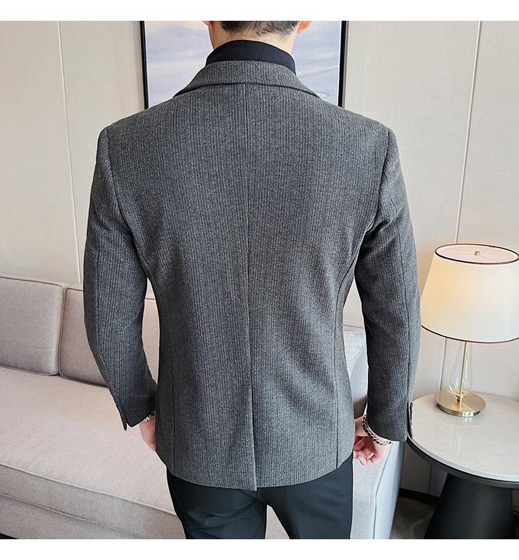 Traje de otoño e invierno para hombre, estilo coreano, abrigo de lana de color sólido, rayas oscuras, estilo coreano, traje pequeño informal de moda, envío gratuito