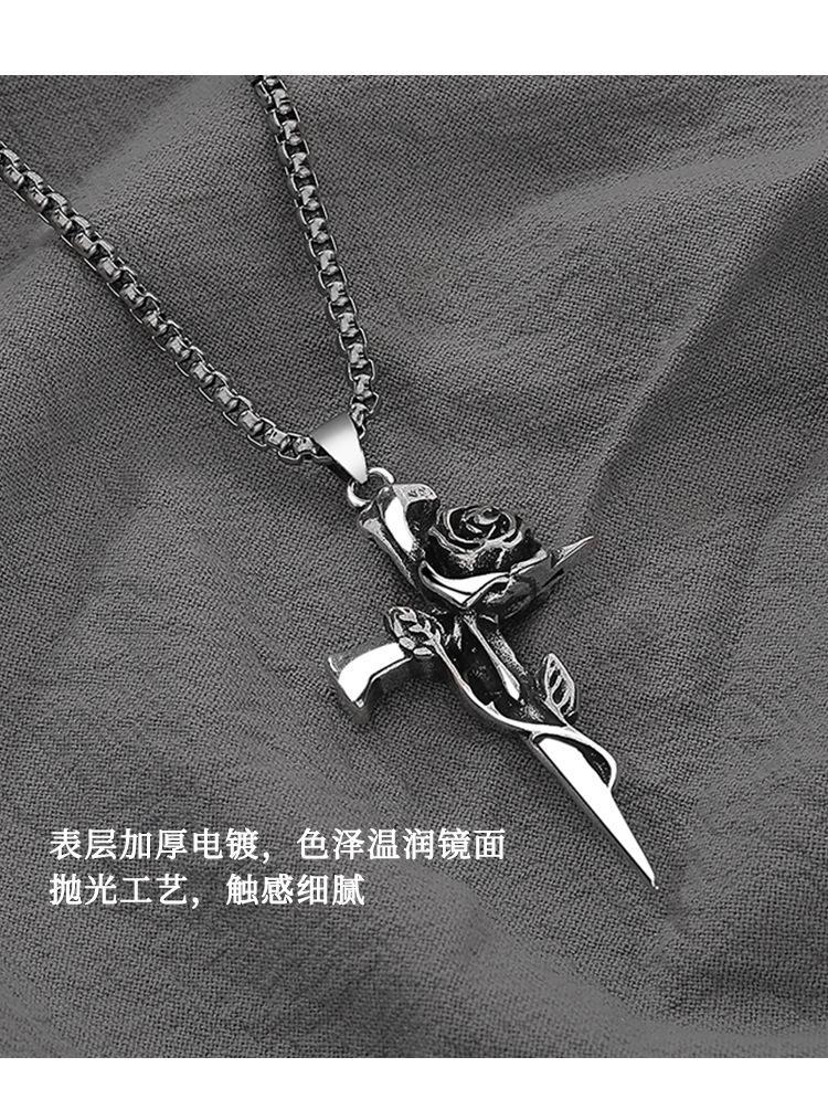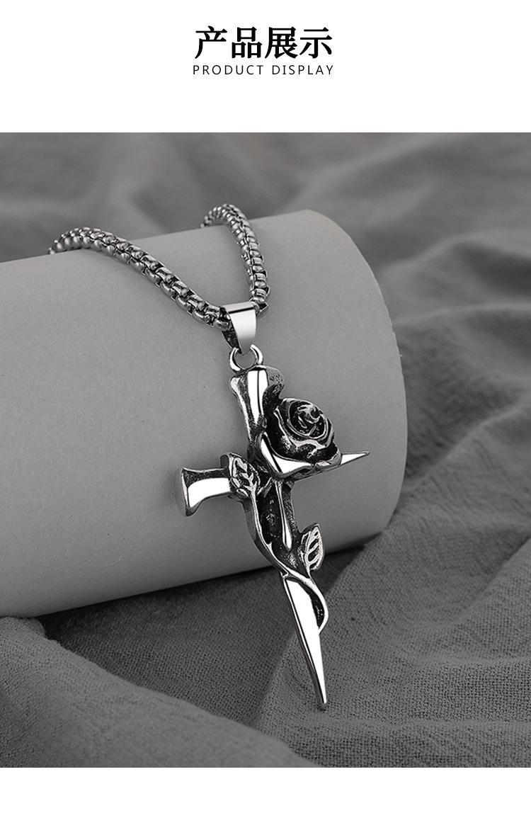 8394# rose cross necklace-titanium steel chain -70cm