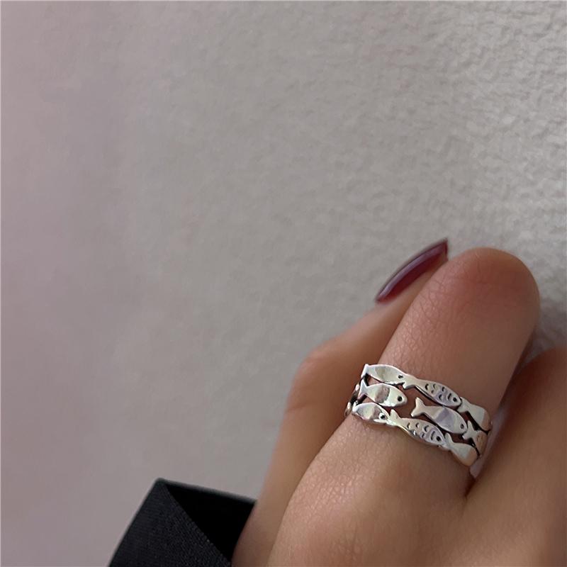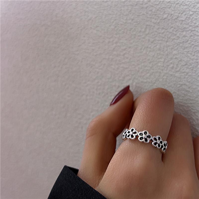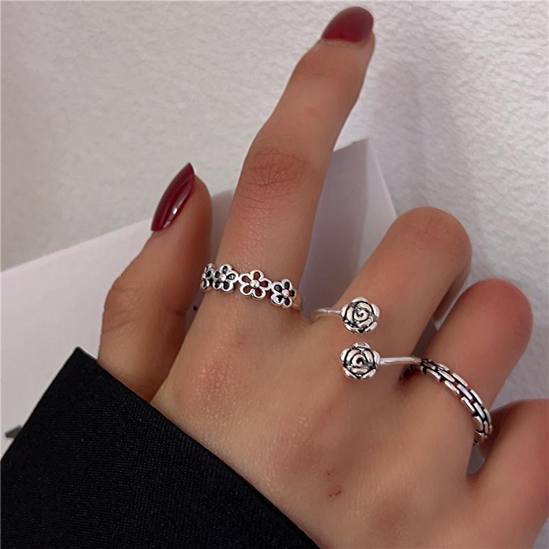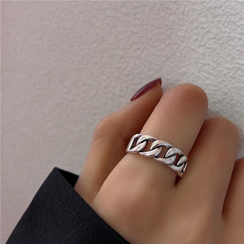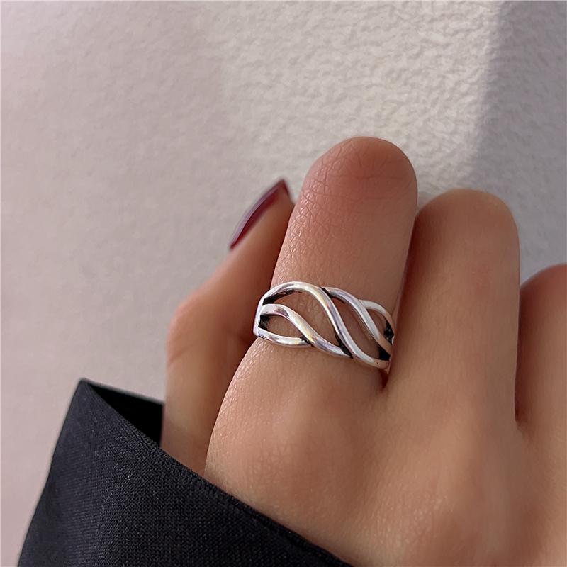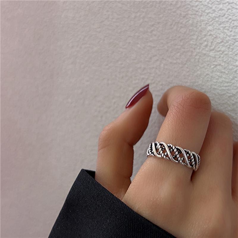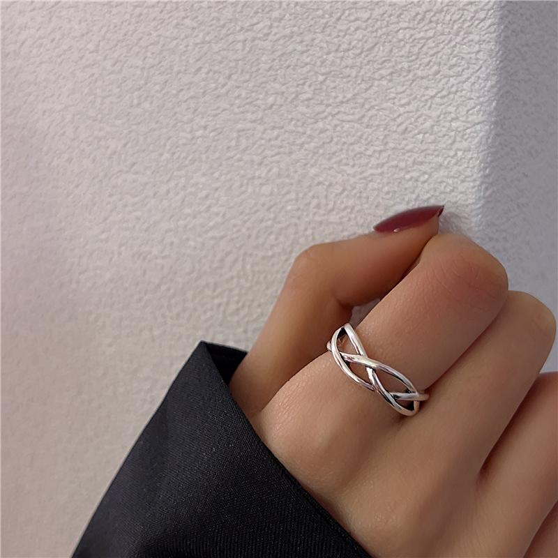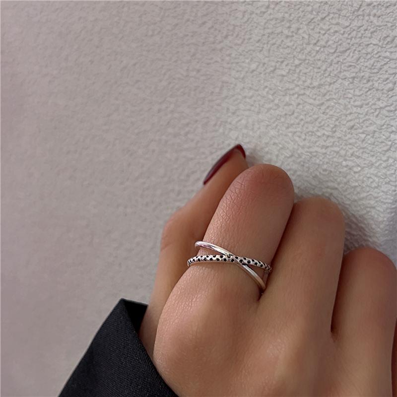 Anillo cruzado de estilo frío para mujer, estilo retro antiguo, nicho de plata tailandesa, anillo de dedo índice ajustable y abierto de alta gama.