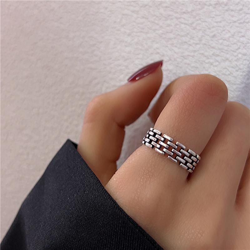 Anillo de plata esterlina con índice y combinación simple para industria pesada, anillo femenino de lujo ligero con personalidad de estilo frío y disco.