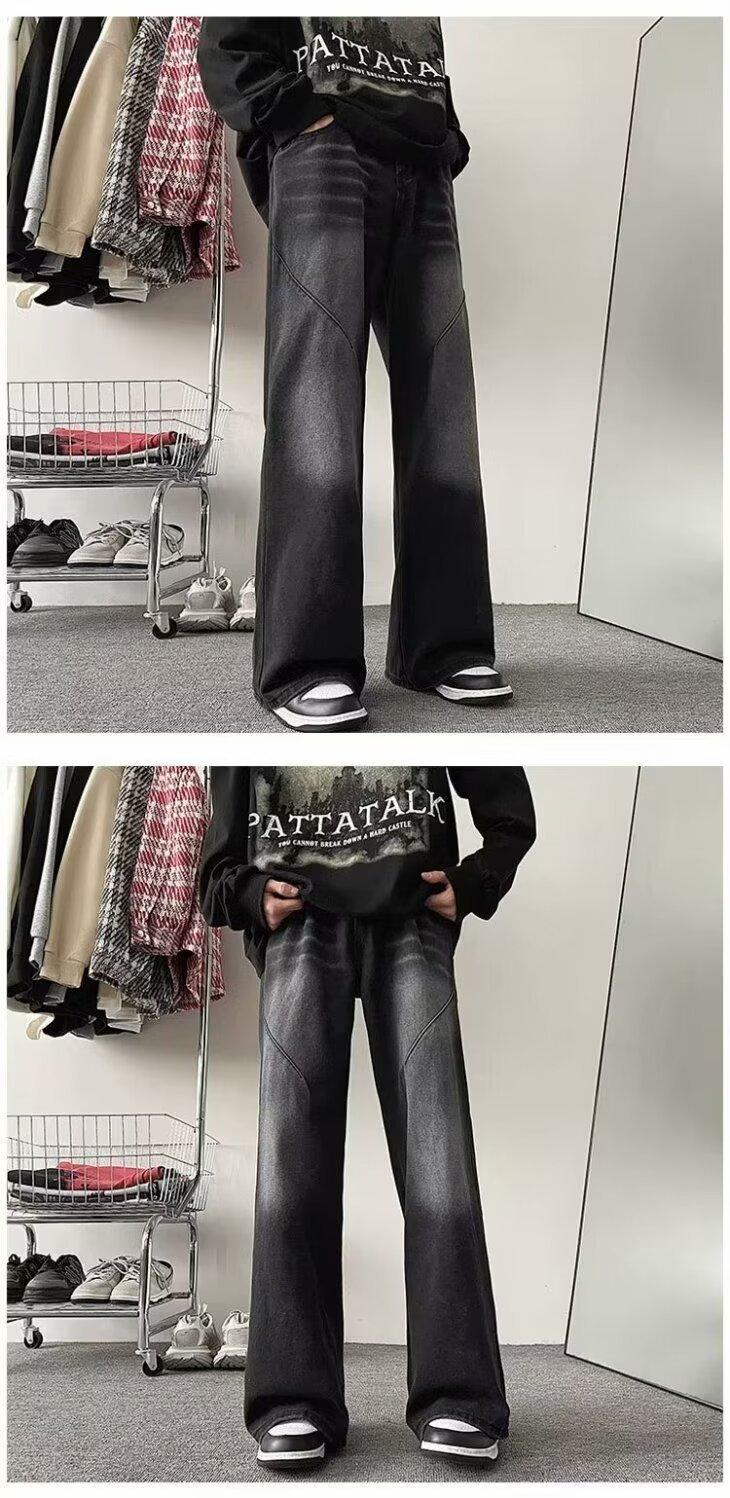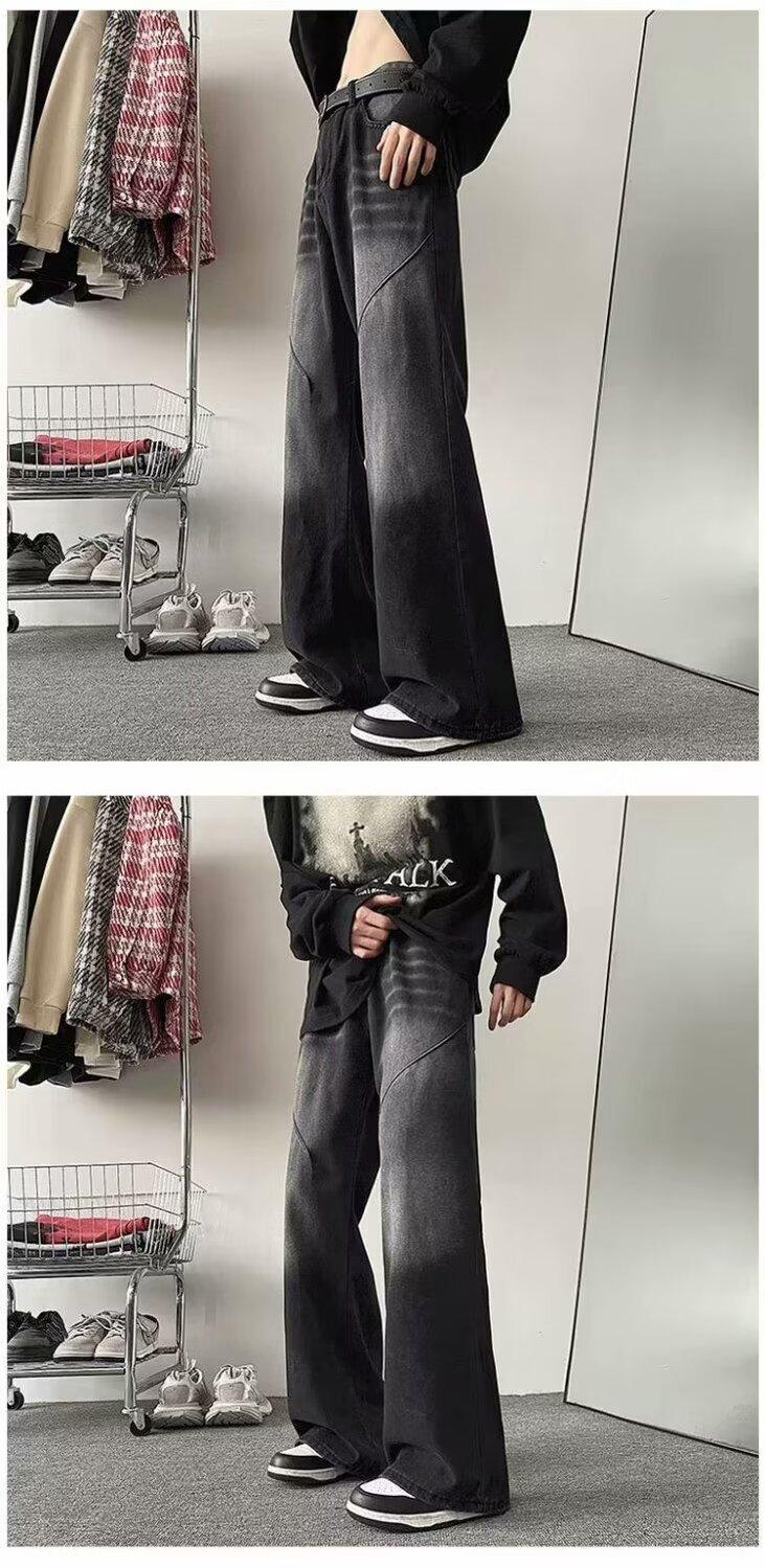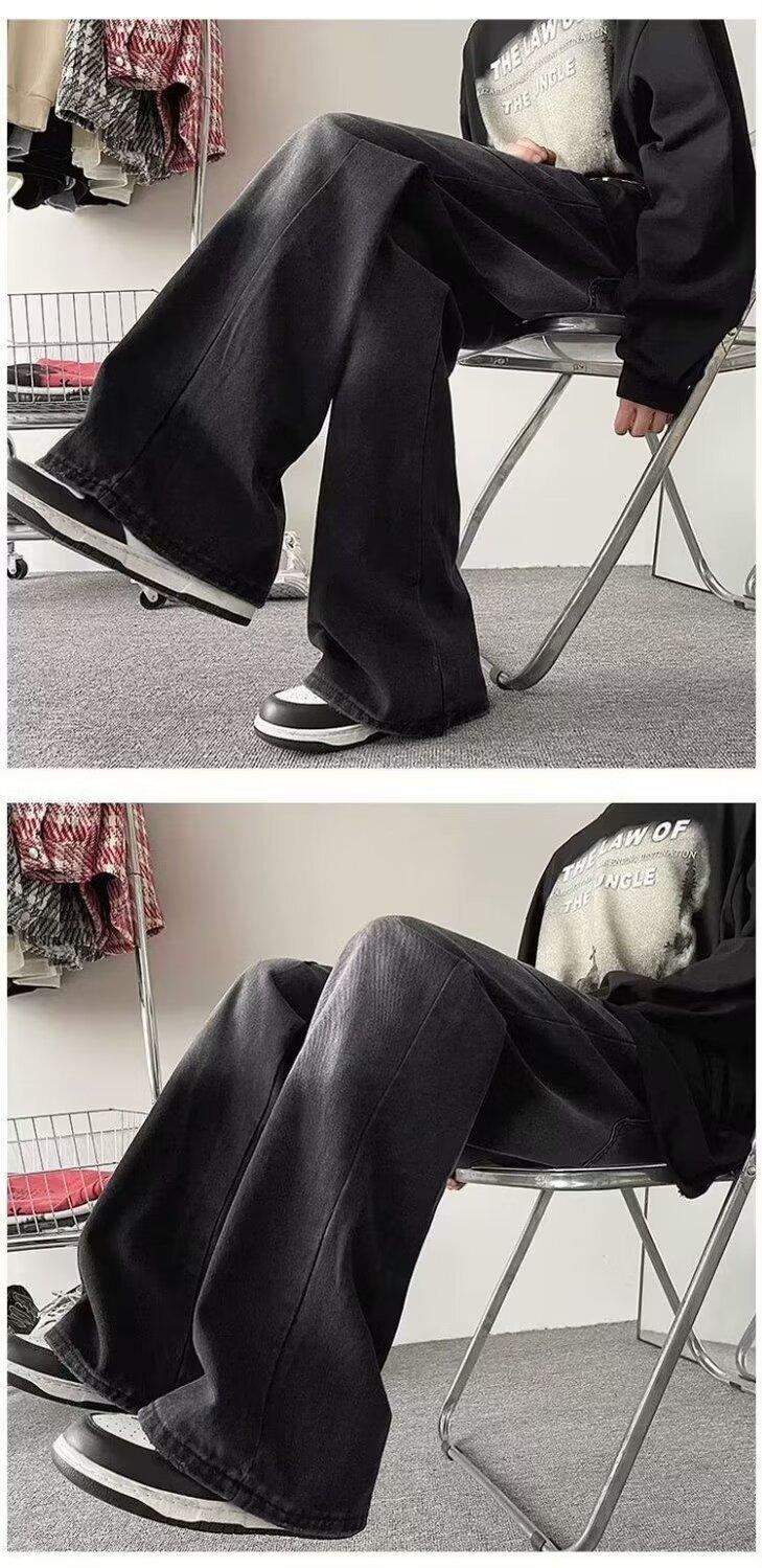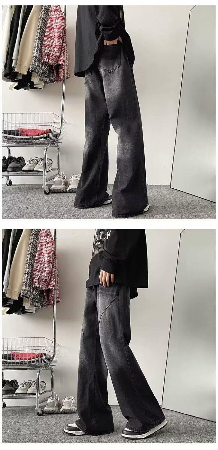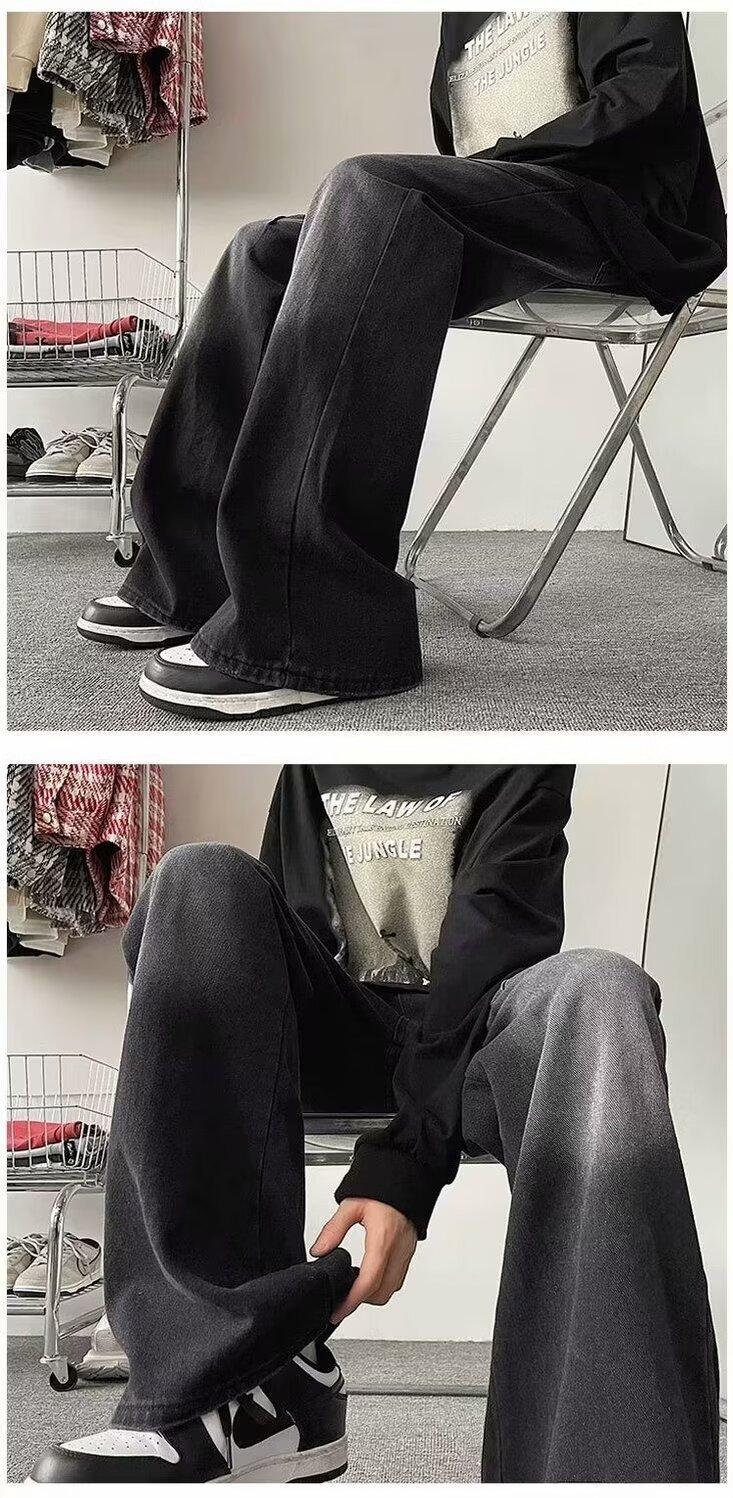 Pantalones vaqueros negros lavados para hombre, estilo urbano, modernos, combinables, estilo americano, holgados y rectos.
