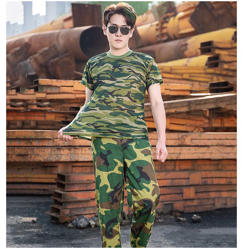 Traje de camuflaje para hombres y mujeres, ropa de entrenamiento militar para estudiantes, ropa de verano para exteriores, camiseta fina de camuflaje de entrenamiento militar, conjunto completo de manga corta