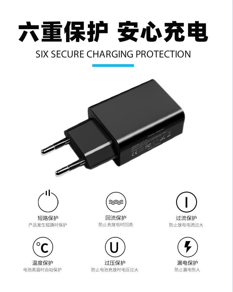 Cargador de teléfono móvil 5V2A, cabezal de carga, enchufe USB, calibre europeo, cabezal de carga rápida universal multifunción