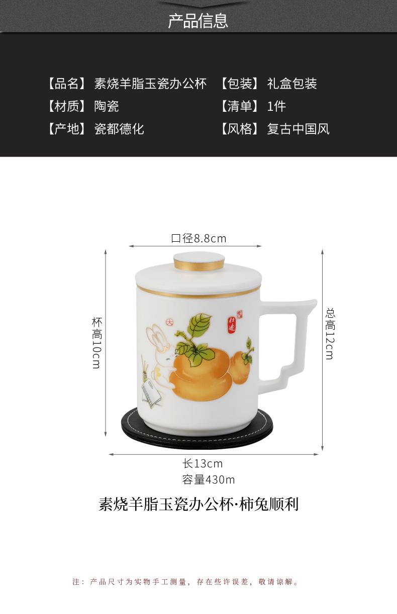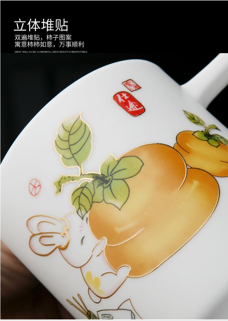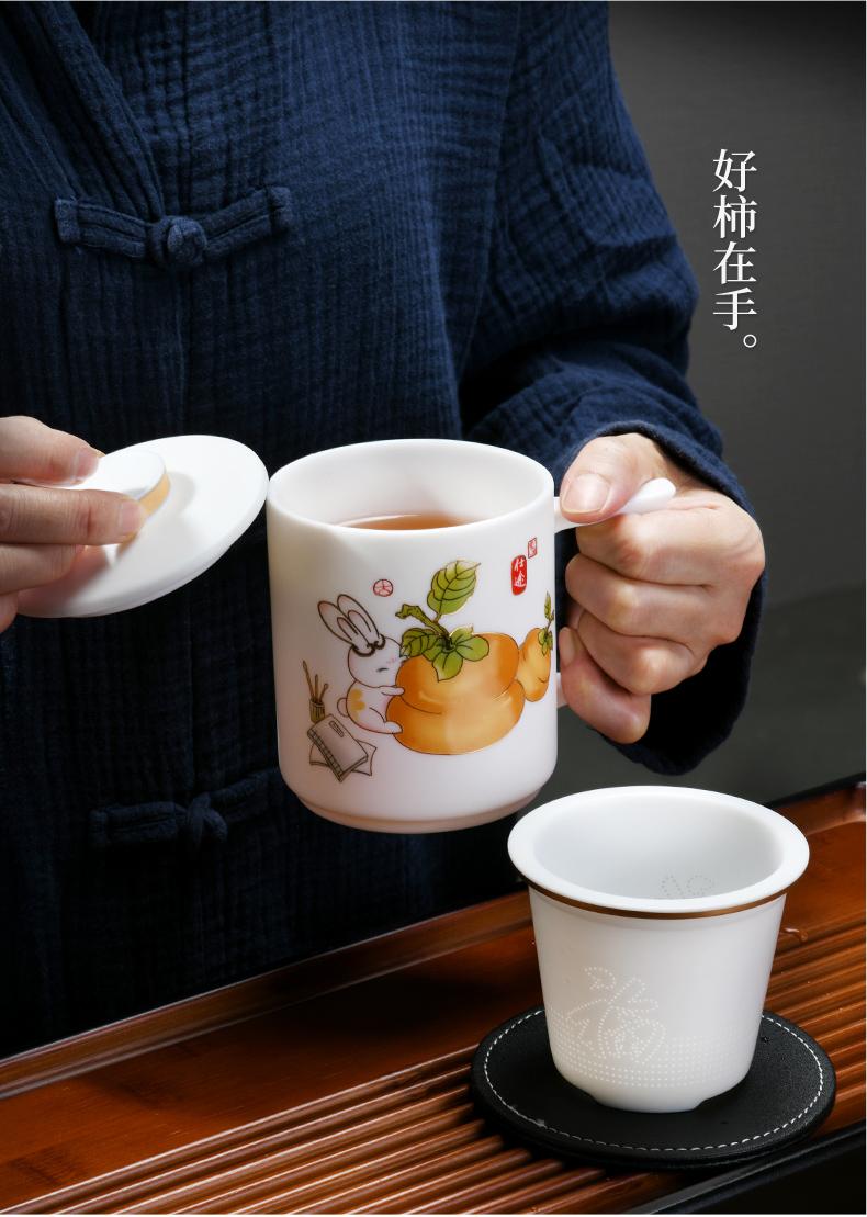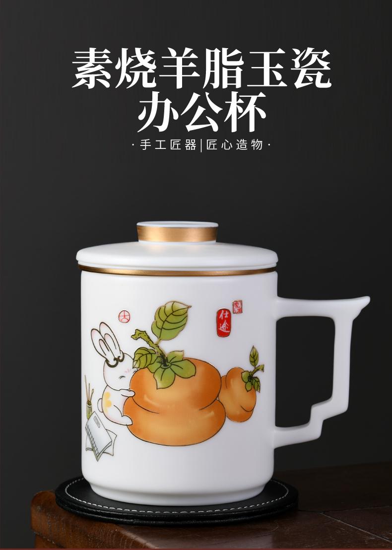 Plain Burned Suet Jade Porcelain Office Cup. Persimmon Rabbit Smooth, Plain Burned Suet Jade Porcelain Office ...