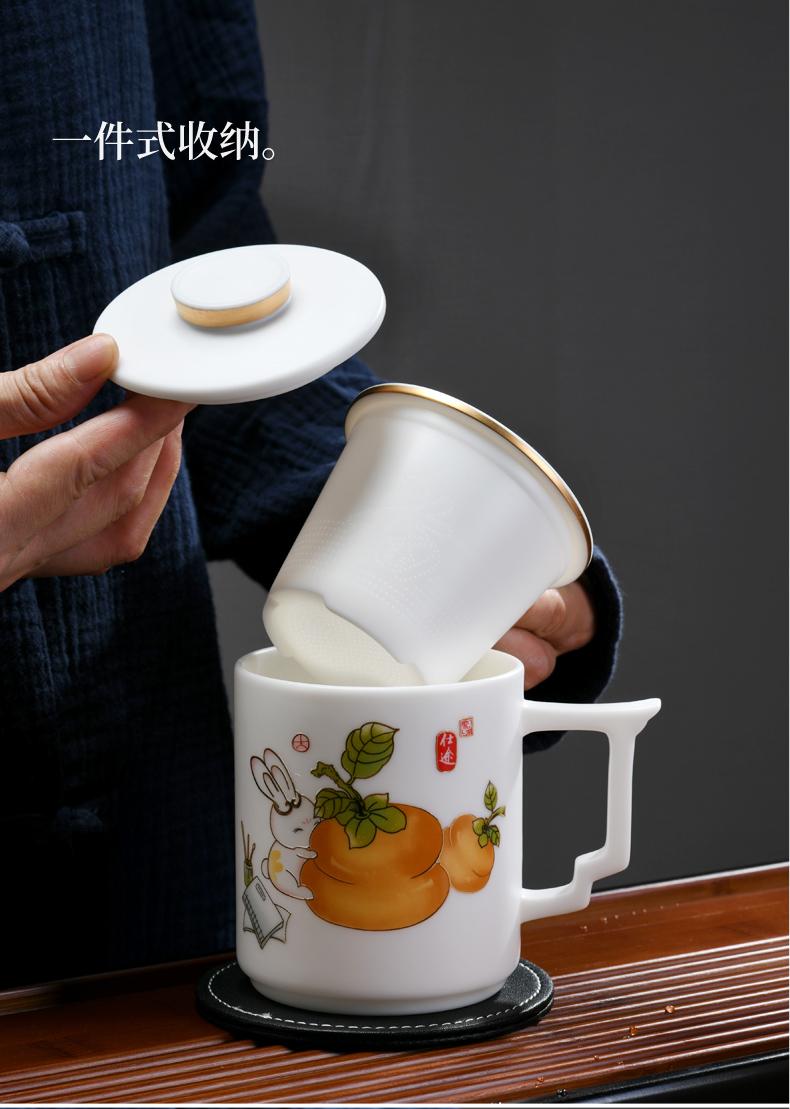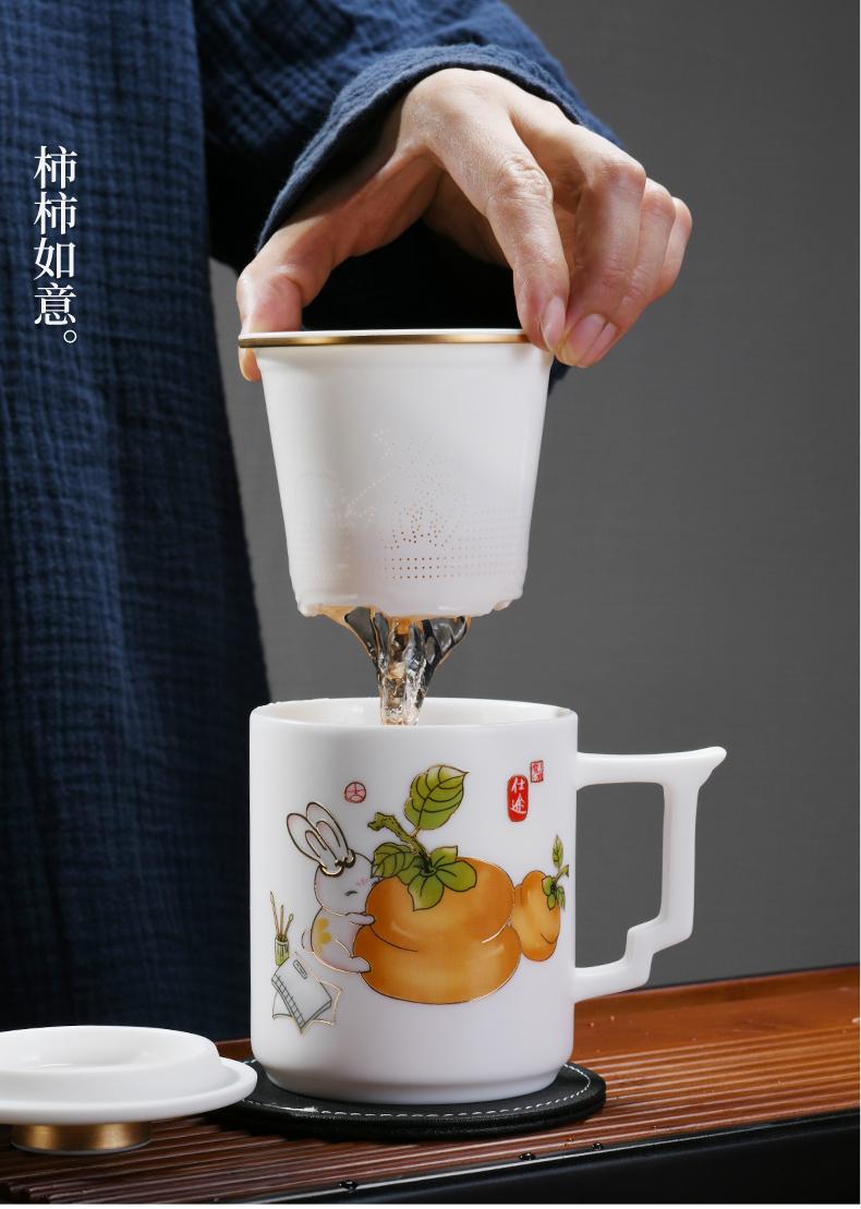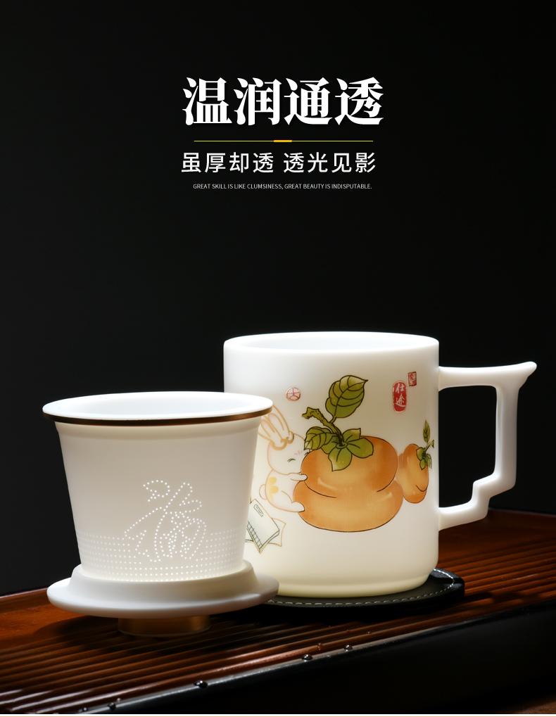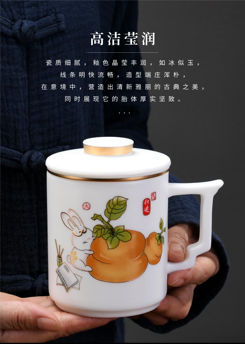 Plain Burned Suet Jade Porcelain Office Cup. Persimmon Rabbit Smooth, Plain Burned Suet Jade Porcelain Office ...