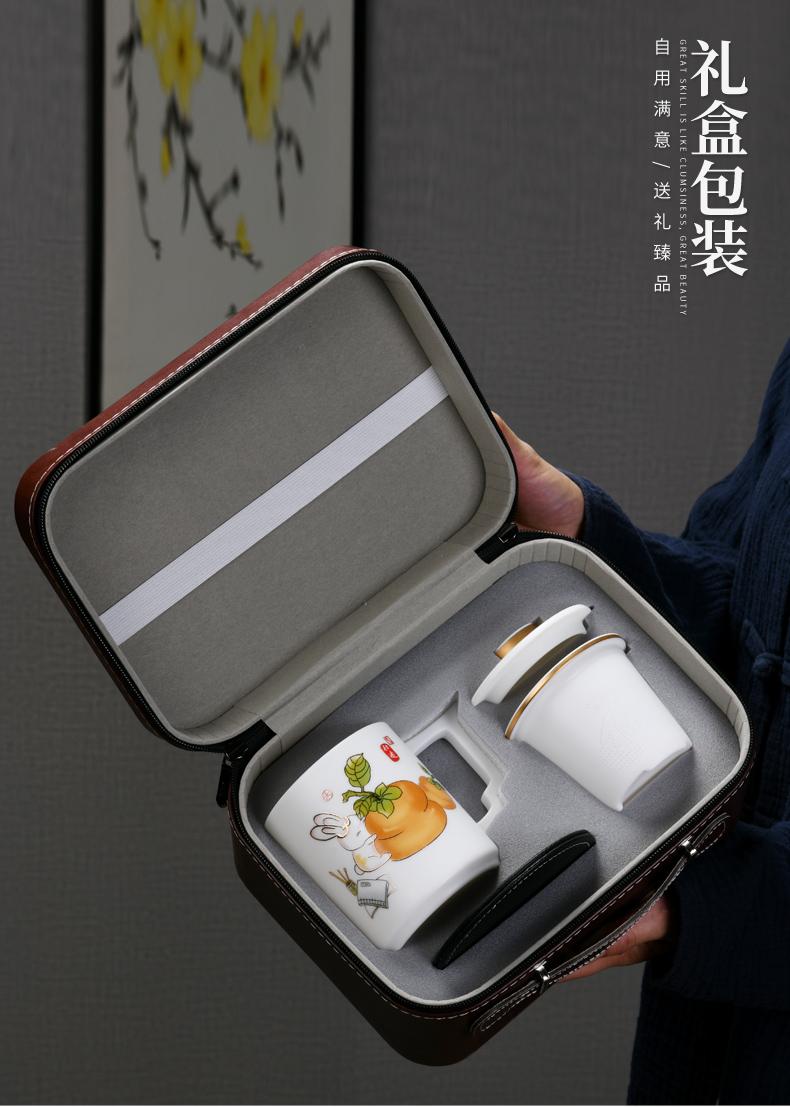 Plain Burned Suet Jade Porcelain Office Cup. Persimmon Rabbit Smooth + Gift Box