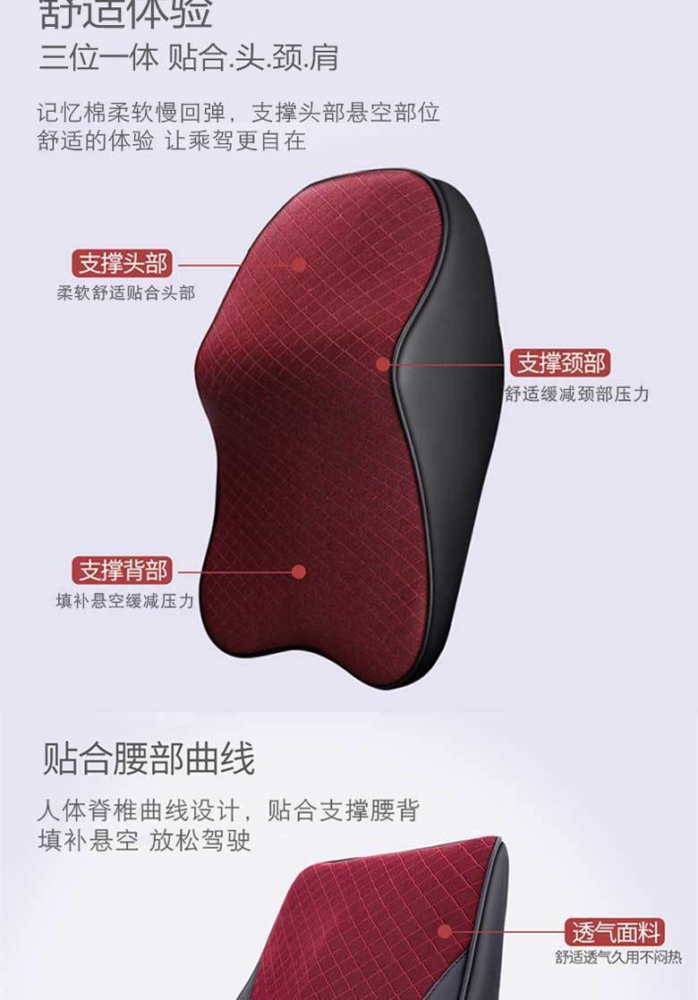 Large headrest (memory Cotton), Waist support (memory Cotton), Large headrest + lumbar support (one set)