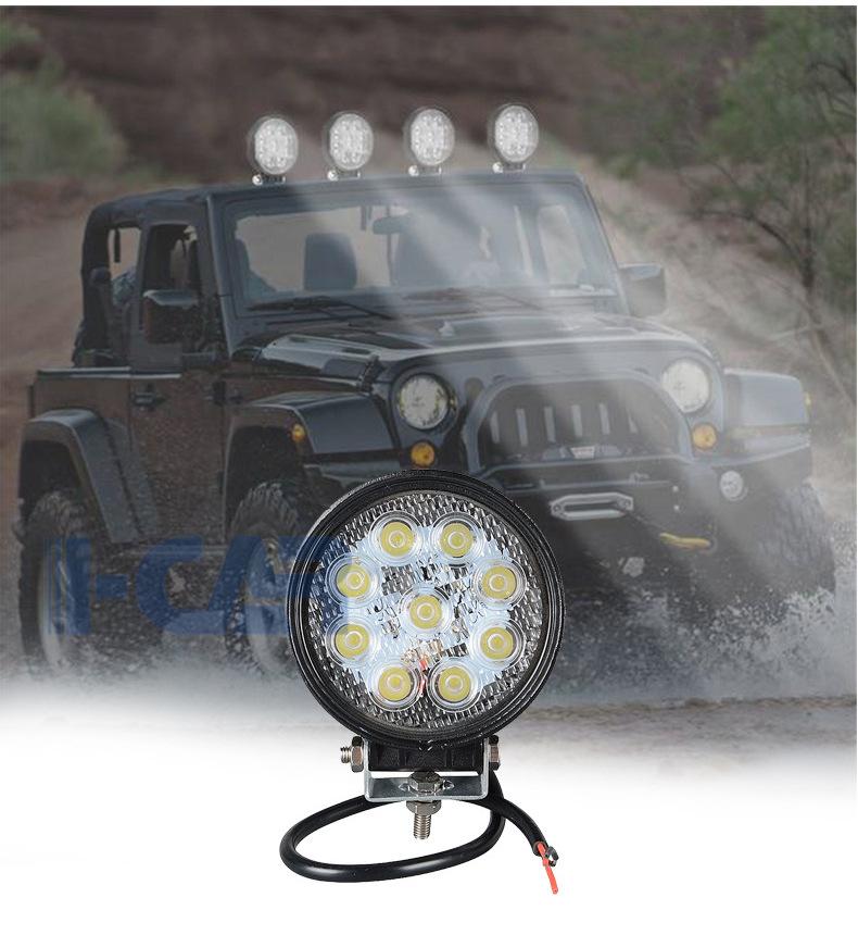 Luz de trabajo LED redonda de 4 pulgadas y 27 W de fábrica, luz auxiliar de ingeniería de mantenimiento, foco modificado para automóvil, vehículo todoterreno, venta al por mayor