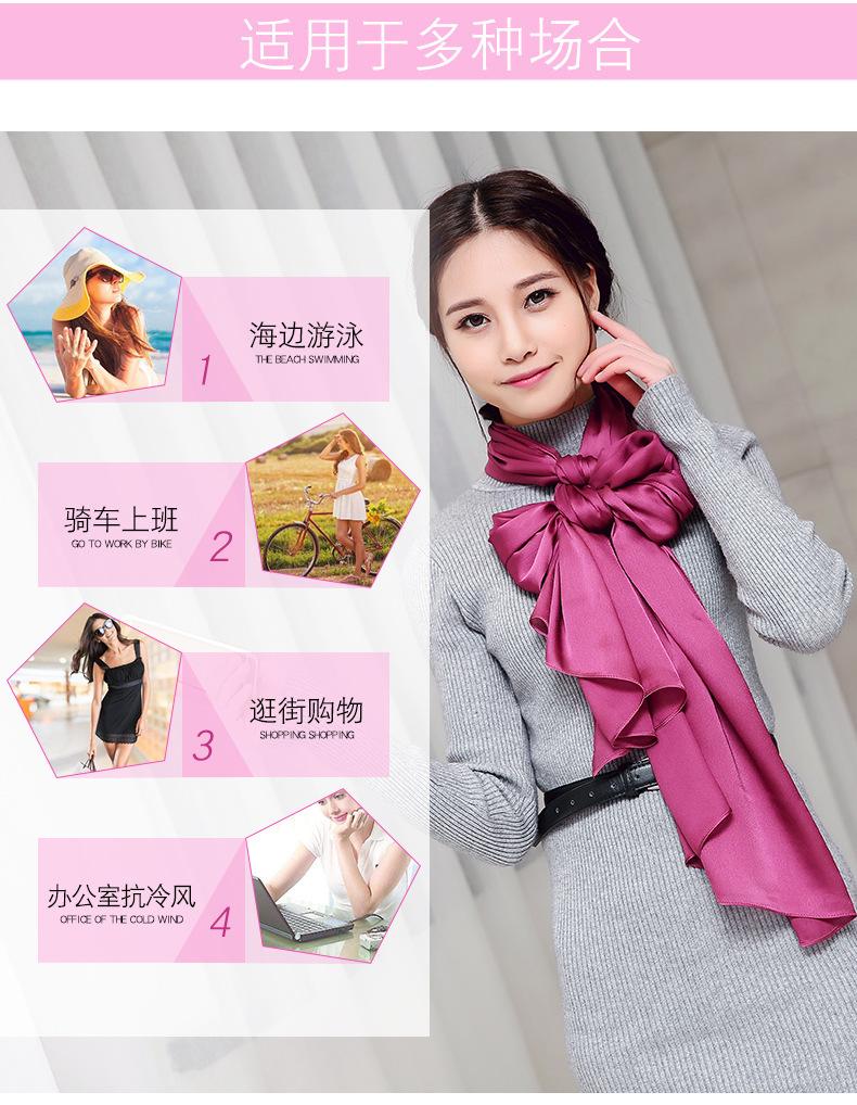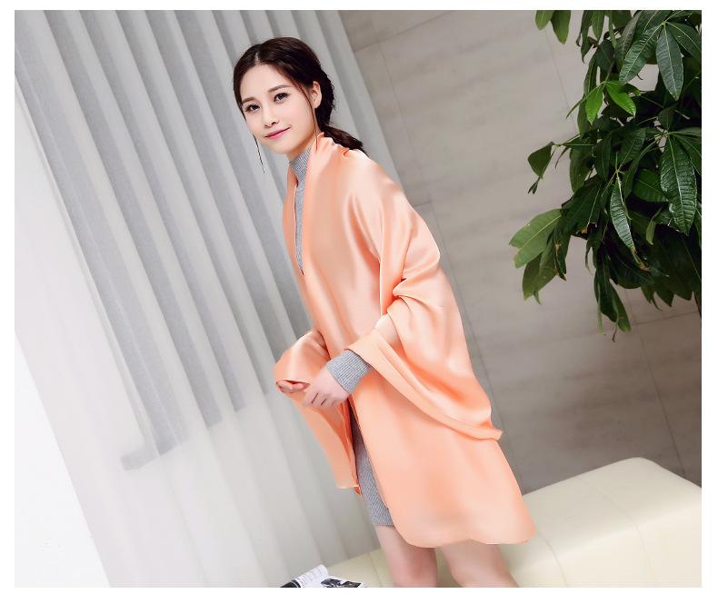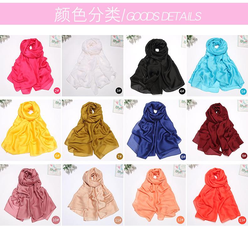 Bufanda de seda satinada de color sólido para mujer, bufanda de protección solar de primavera y verano, chal largo de aire acondicionado Joker de moda, venta al por mayor