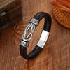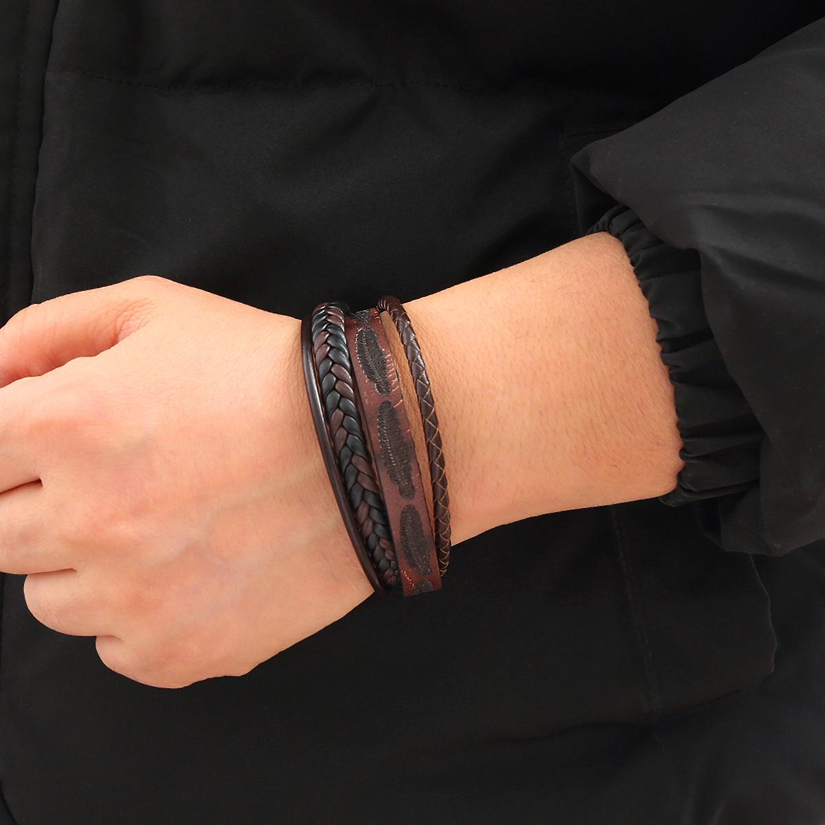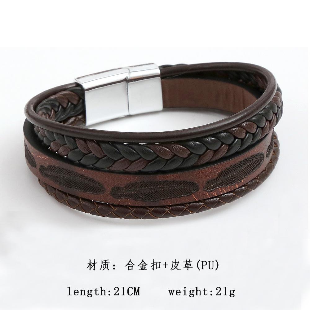 Pulsera tejida de cuero con plumas para hombre, nueva y transfronteriza, pulsera con hebilla de aleación simple y moderna para hombre.