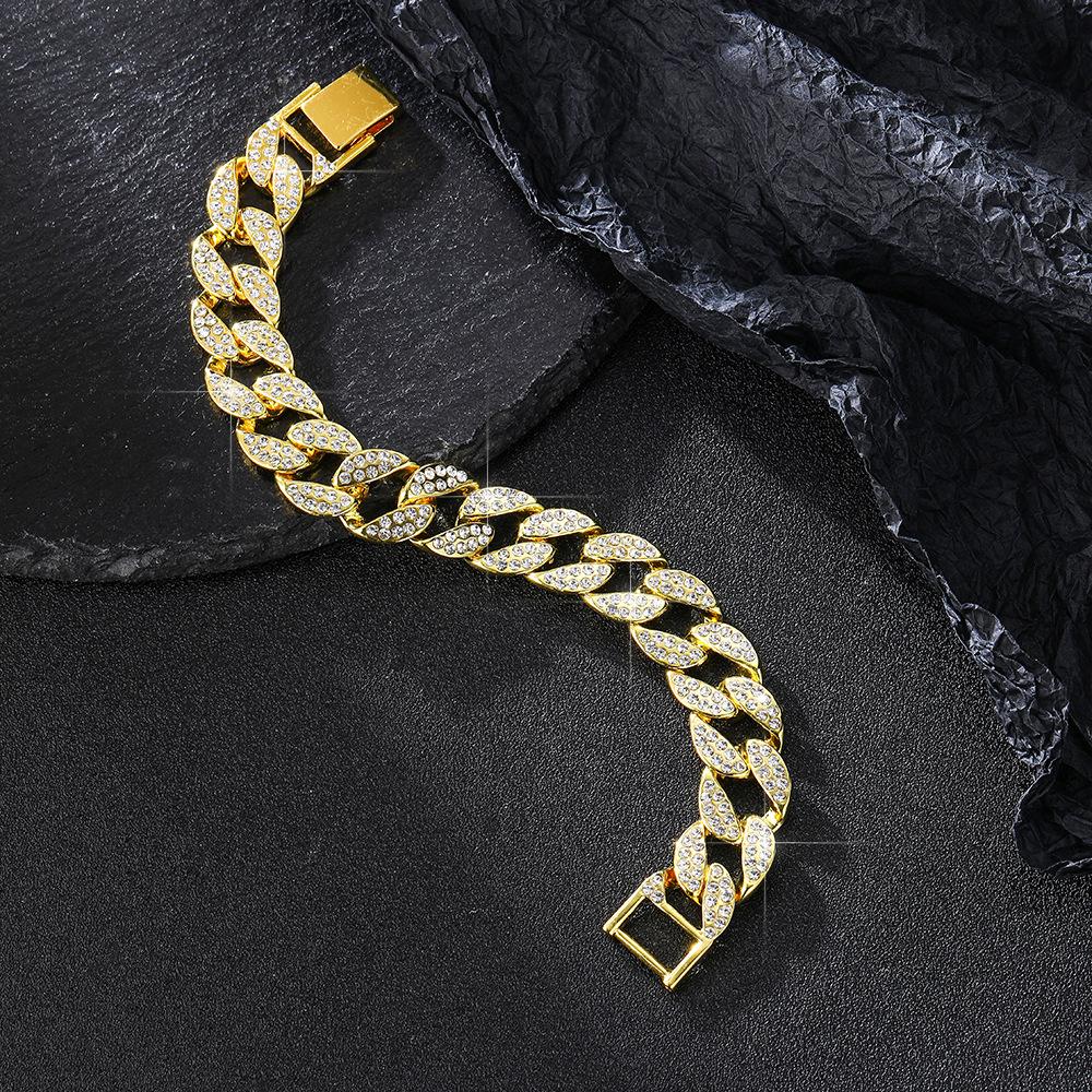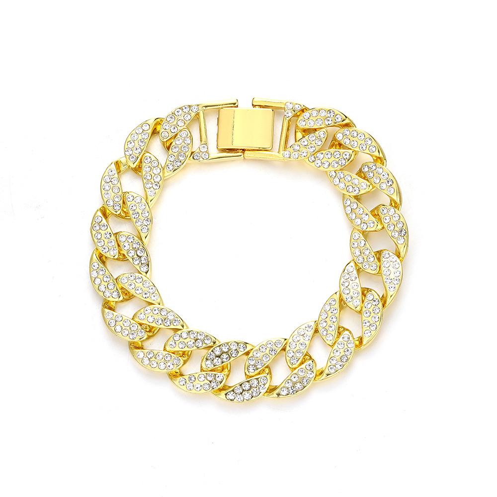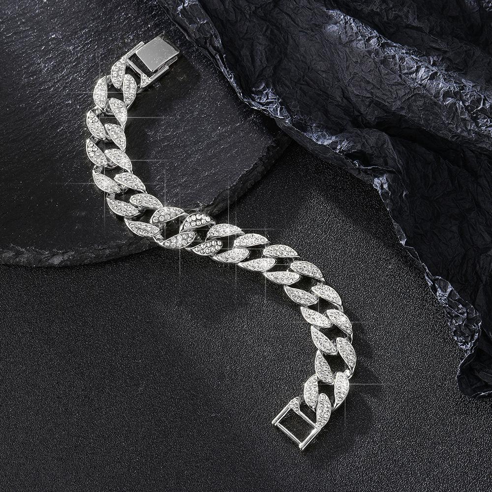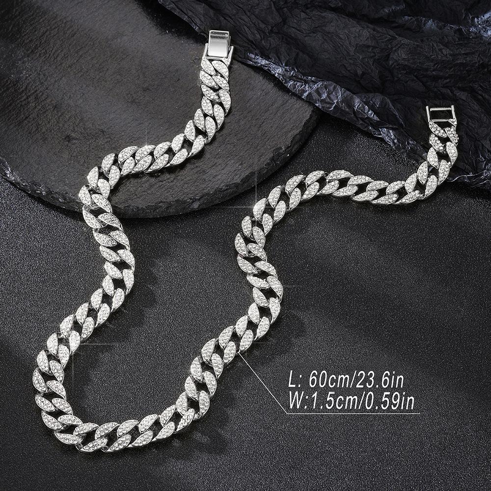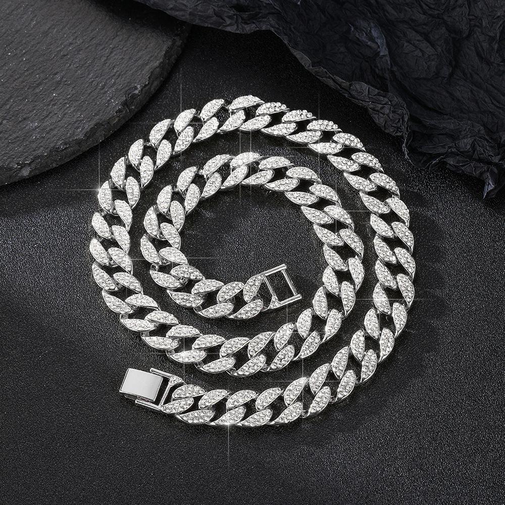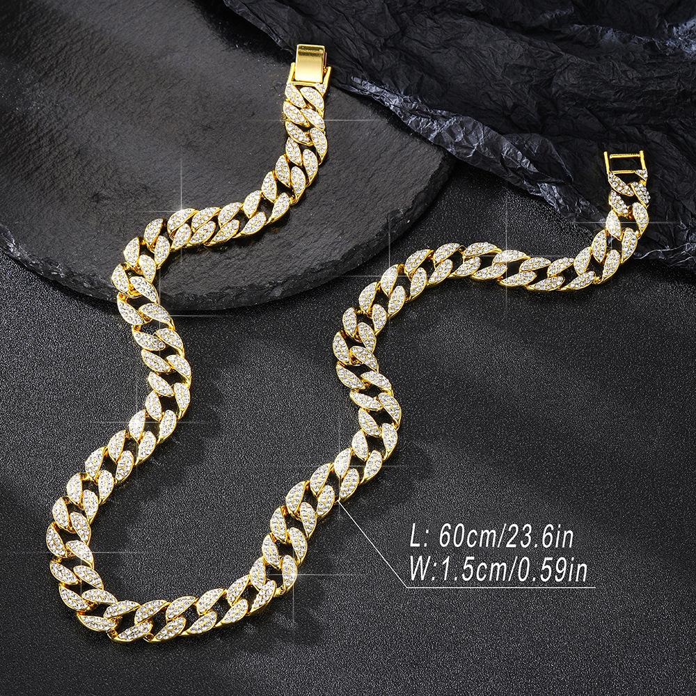 Collar de hip hop popular transfronterizo con personalidad de marca de moda dominante, collar de cadena cubana de diamantes de imitación de aleación de 15 mm, exclusivo transfronterizo