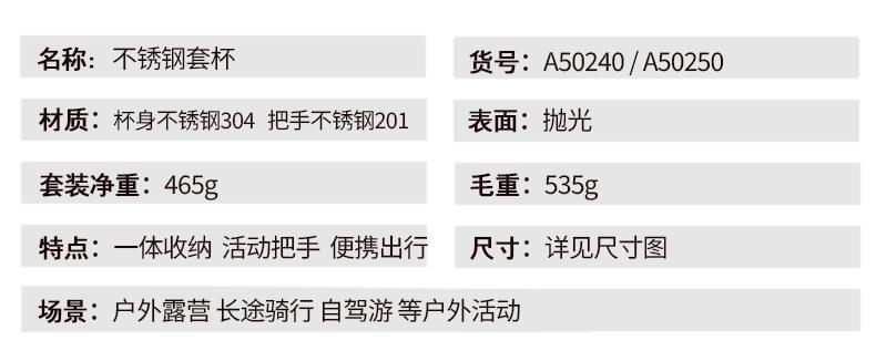 304 stainless steel cup set-mountain handle, 304 Stainless Steel Cup Set-D Handle