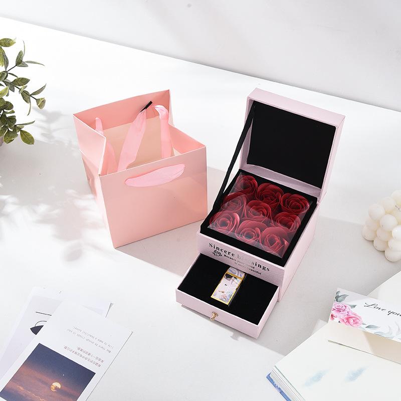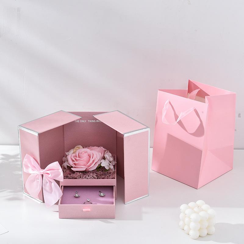 Caja de Regalo para Empaque de Joyería con Lazo de Doble Puerta para el Día de San Valentín, Creativa Caja de Regalo 520 para Labial de Rosas