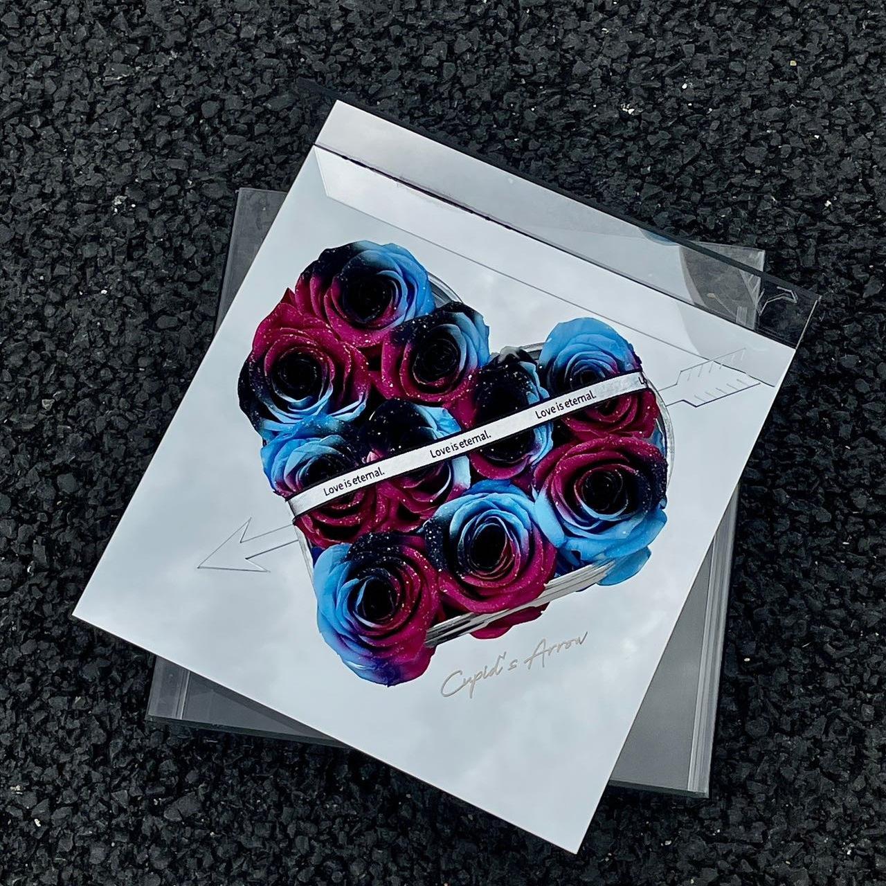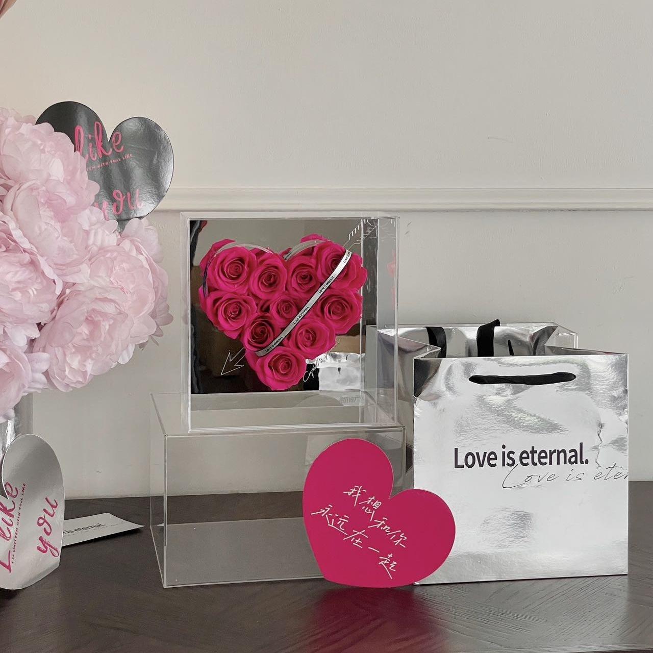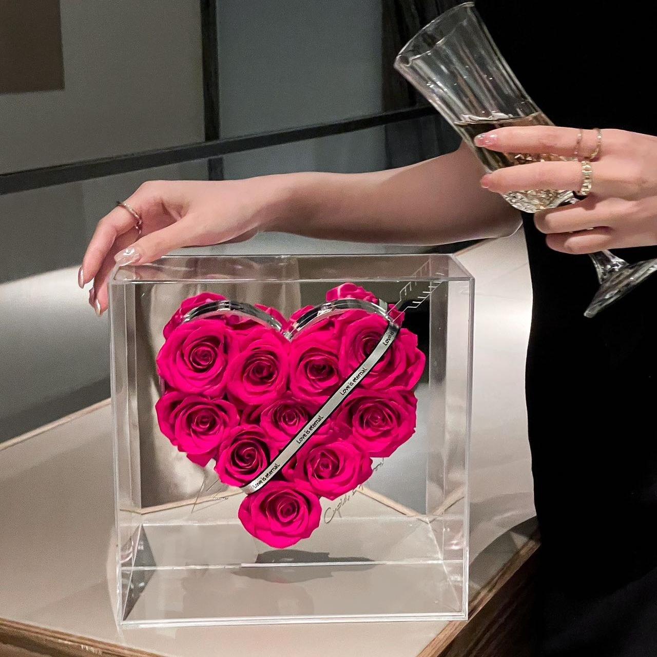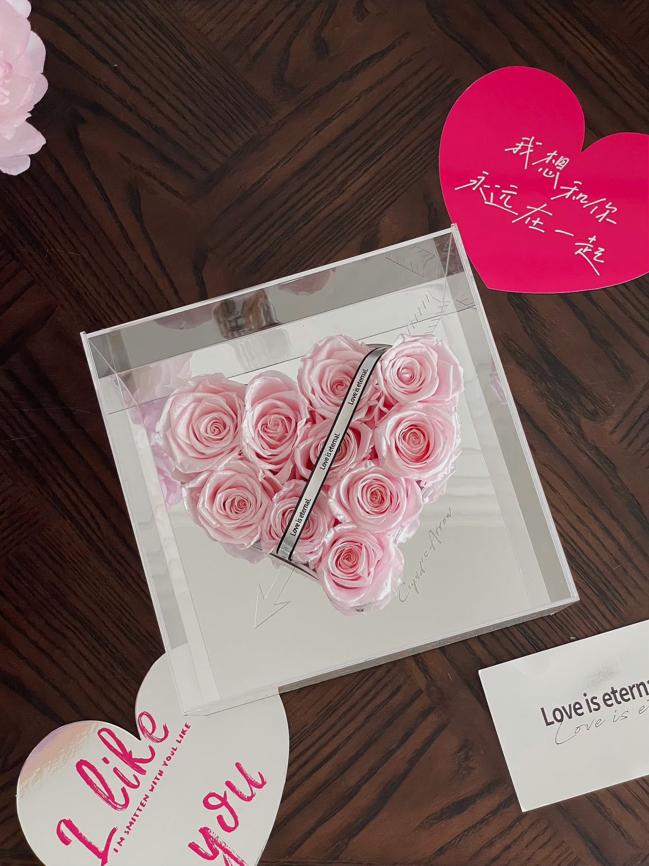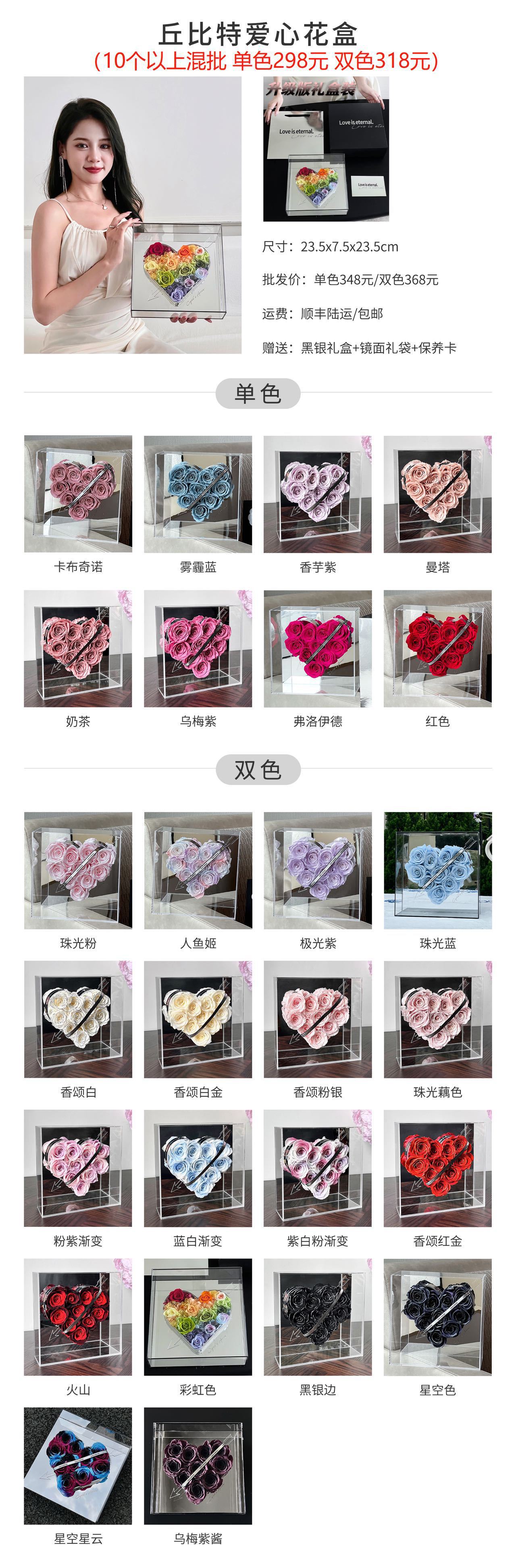 Fábrica de cabello liso, flor eterna, rosa, Cupido, amor verdadero, flor creativa, caja de regalo para San Valentín, flores secas, productos terminados, venta al por mayor