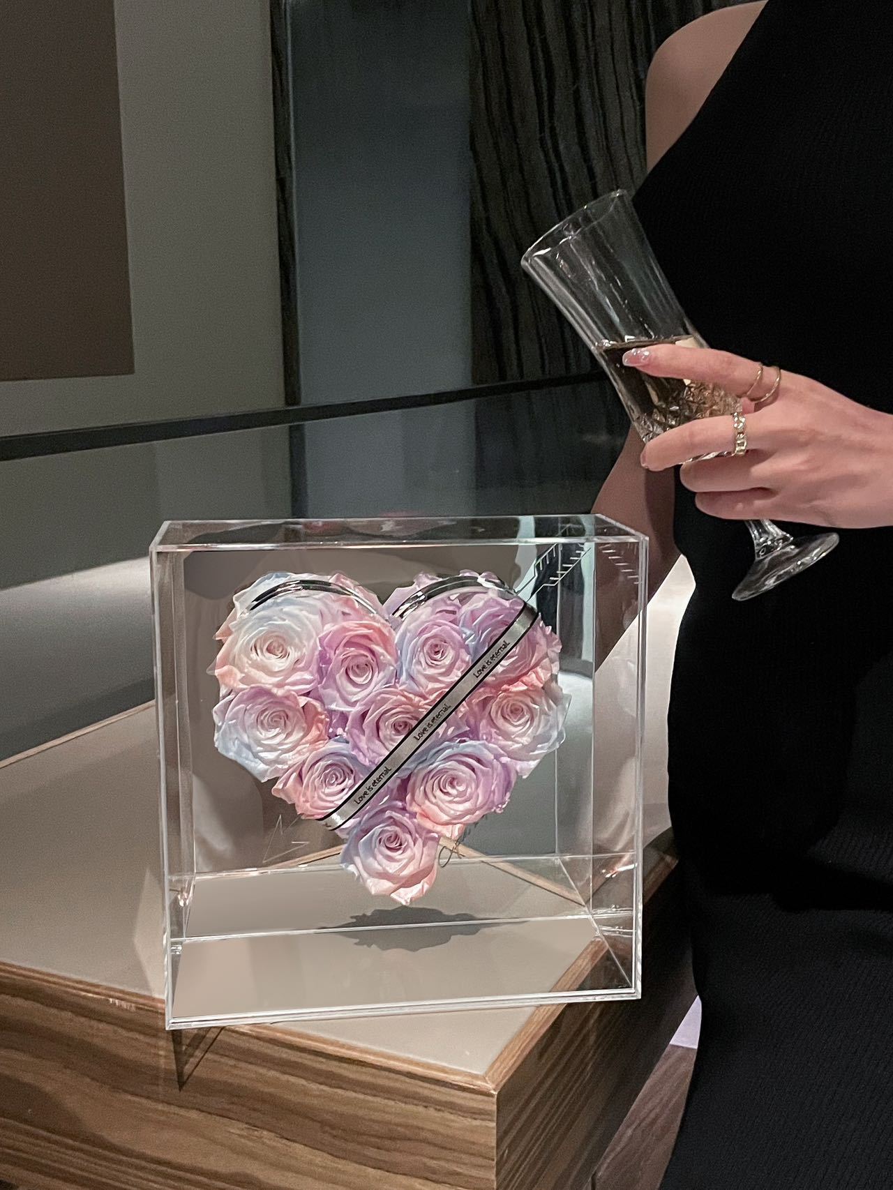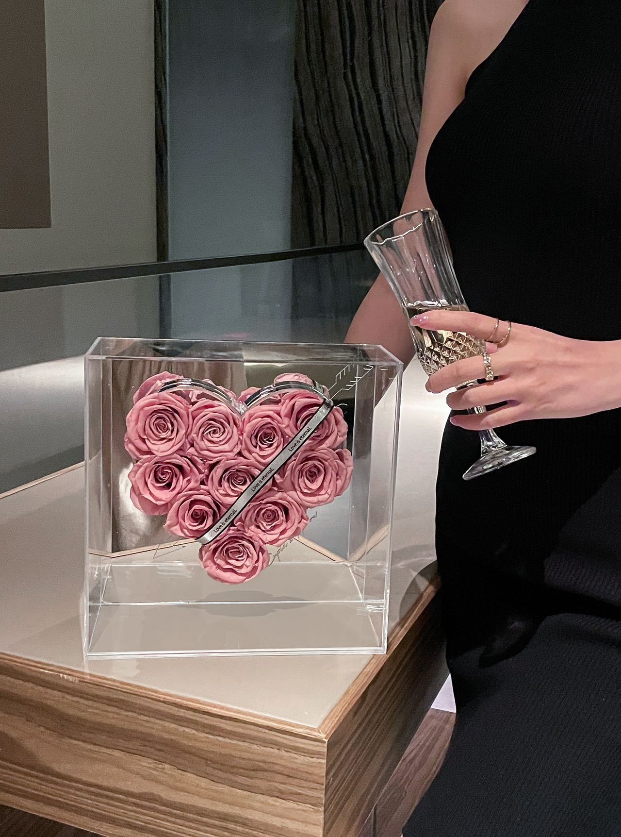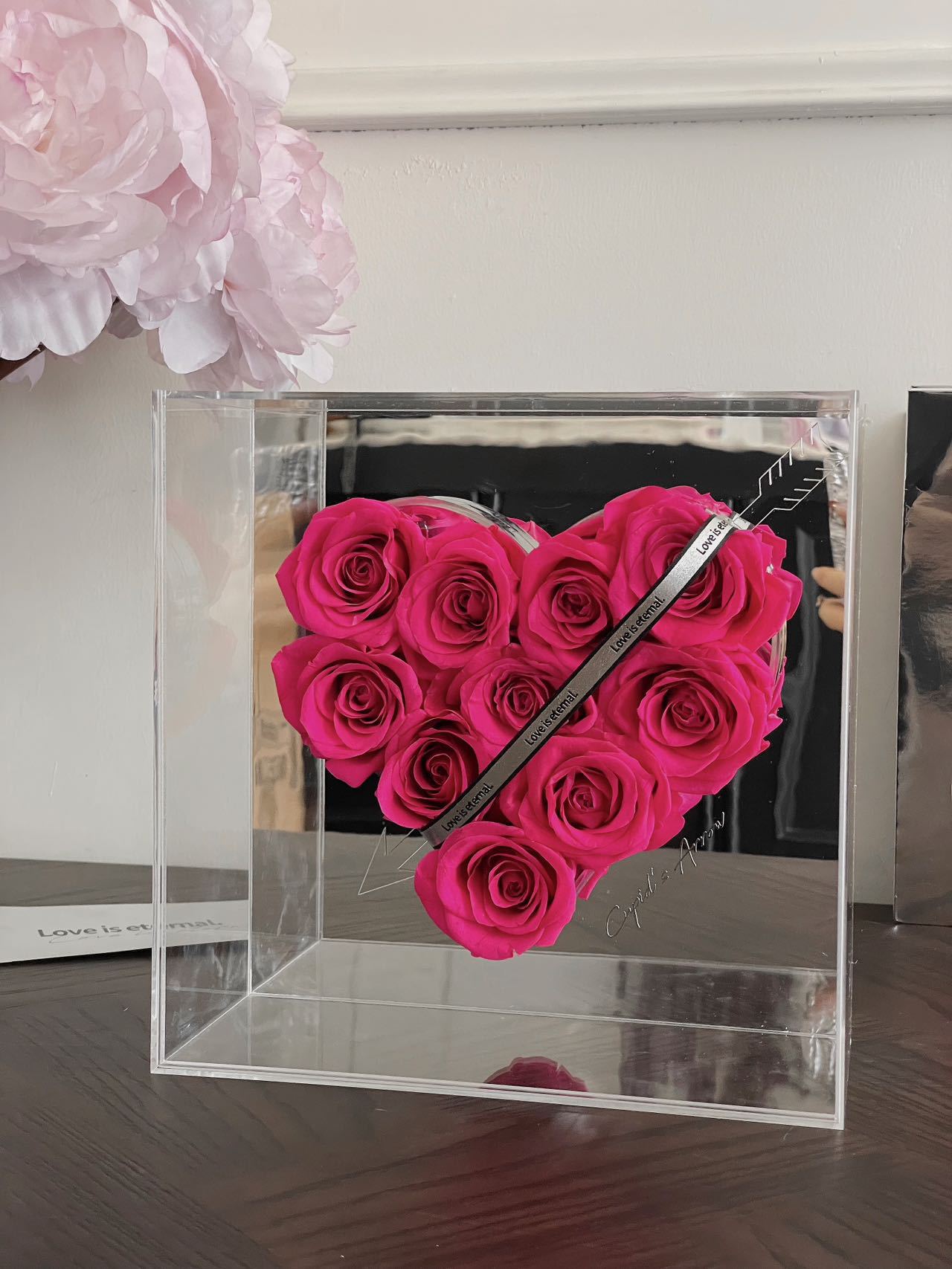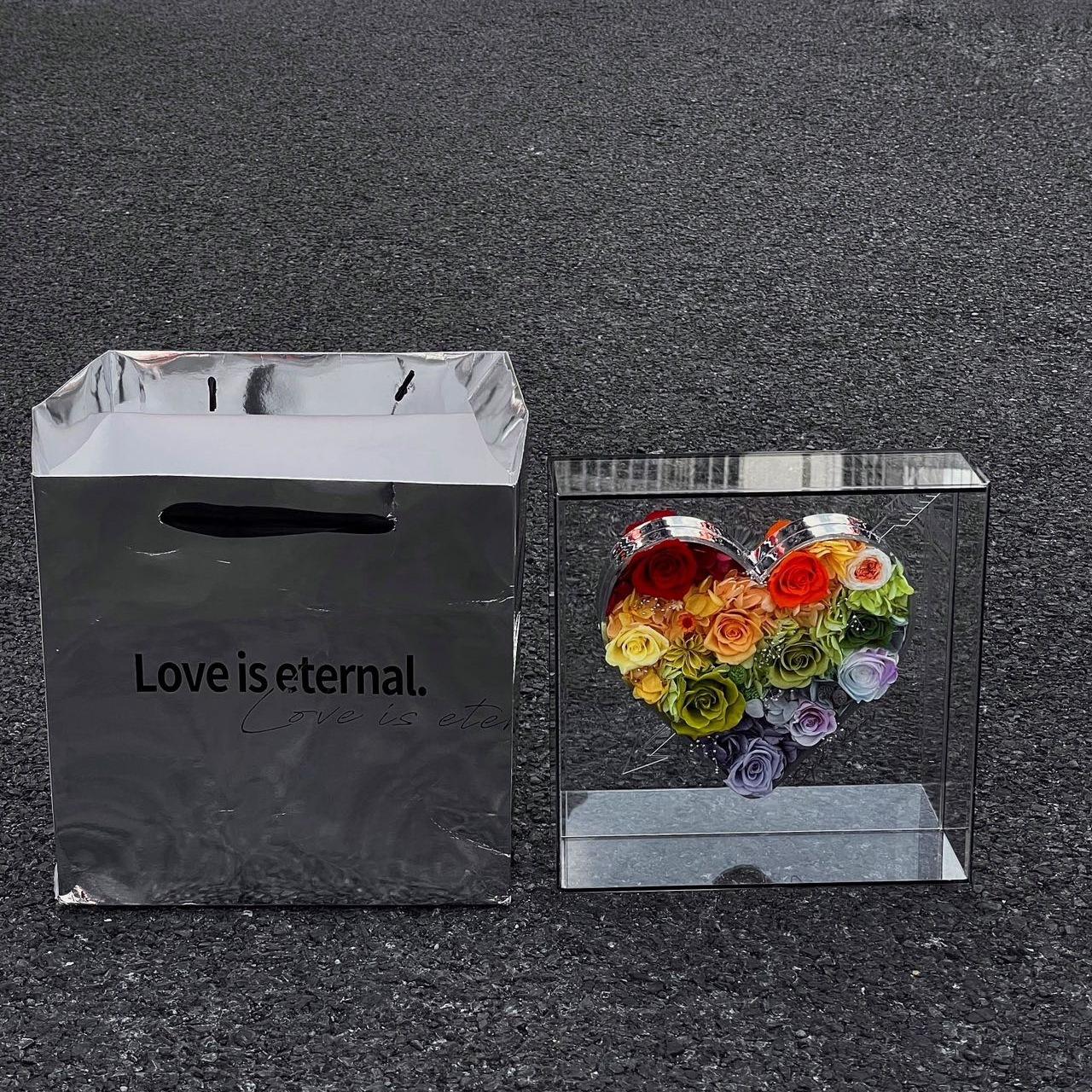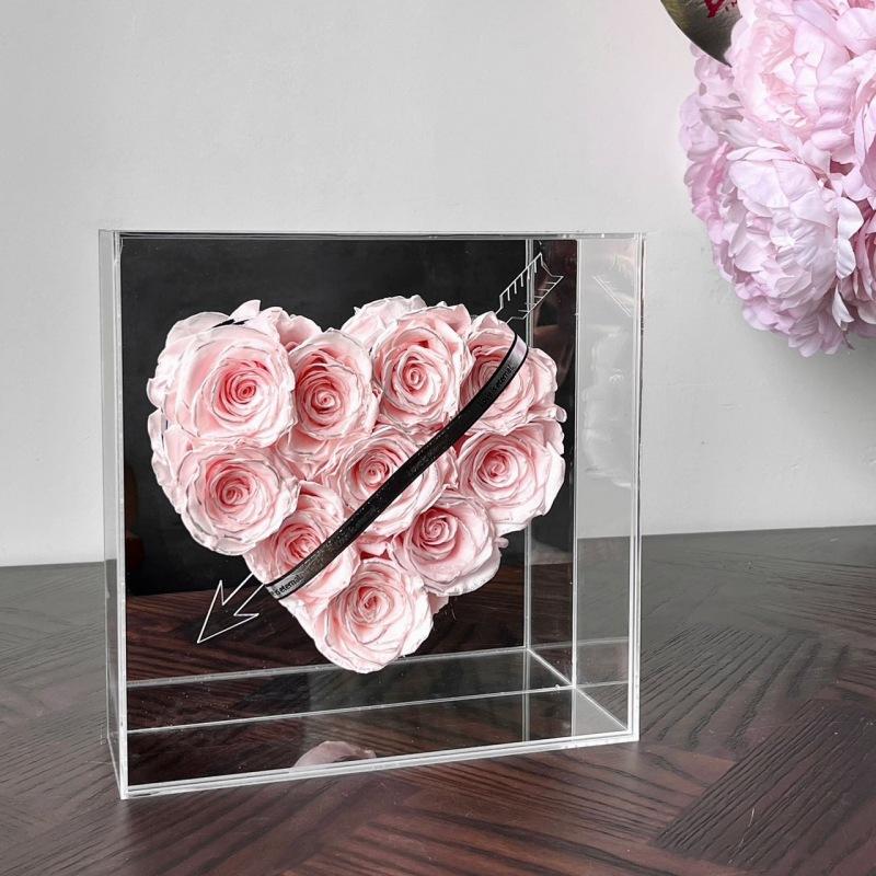 Fábrica de cabello liso, flor eterna, rosa, Cupido, amor verdadero, flor creativa, caja de regalo para San Valentín, flores secas, productos terminados, venta al por mayor