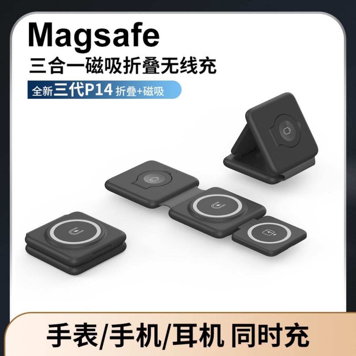 Nuevo cargador inalámbrico magnético plegable tres en uno de 15W para audífonos y carga rápida inalámbrica para teléfono móvil, adecuado para la serie Apple 1478Compre ya