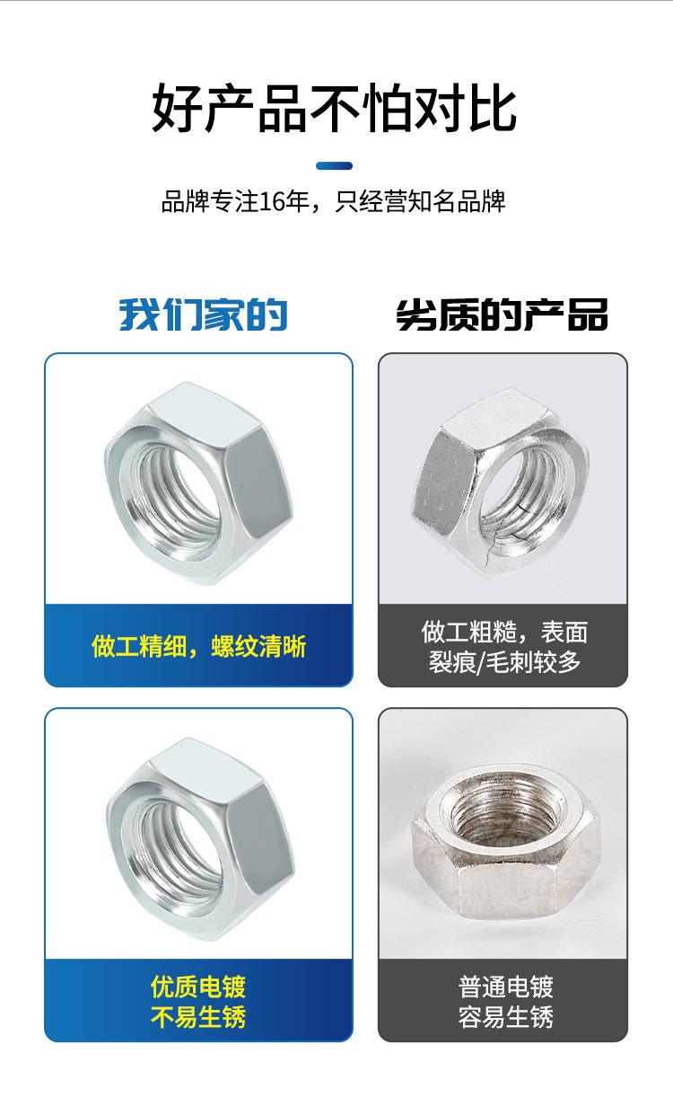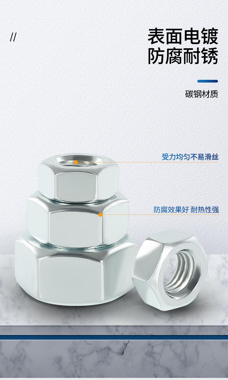 Tuerca hexagonal galvanizada Wenzhou de grado 4, chapada en blanco, con 6 ángulos y 6 bordes, tapa roscada.