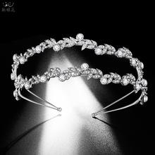 | |  | | Nueva corona nupcial de cristal de princesa europea y americana, diadema de aleación con hojas, joyería de boda, fotografía, tocado de boda |