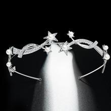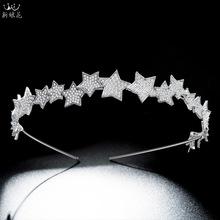 | |  | | Nueva diadema de corona de novia con estrella europea y americana, joyería de boda transfronteriza, tocado de boda, diadema, suministro directo de fábrica |