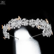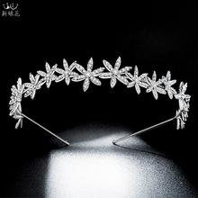 | |  | | Nueva corona de novia de circonita europea y americana, aleación de hojas, tocado de boda atmosférico con diamantes de imitación, accesorios para el cabello de boda de princesa |