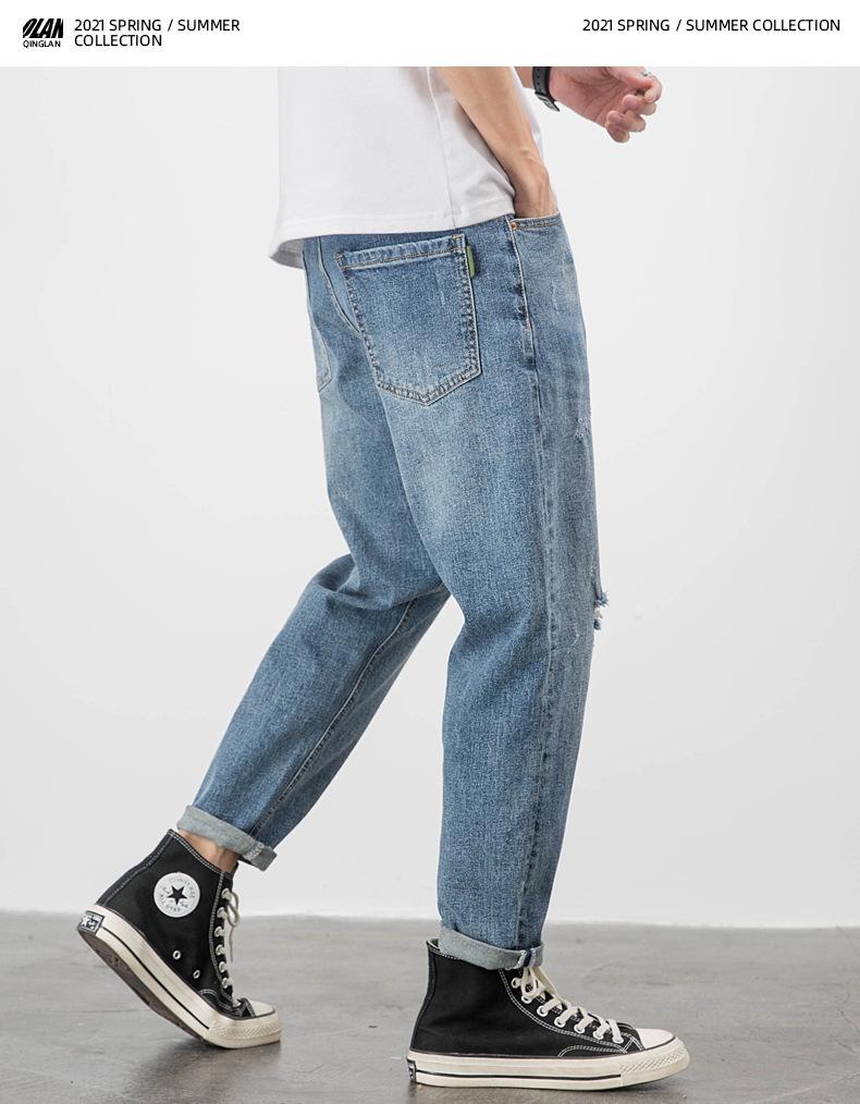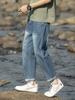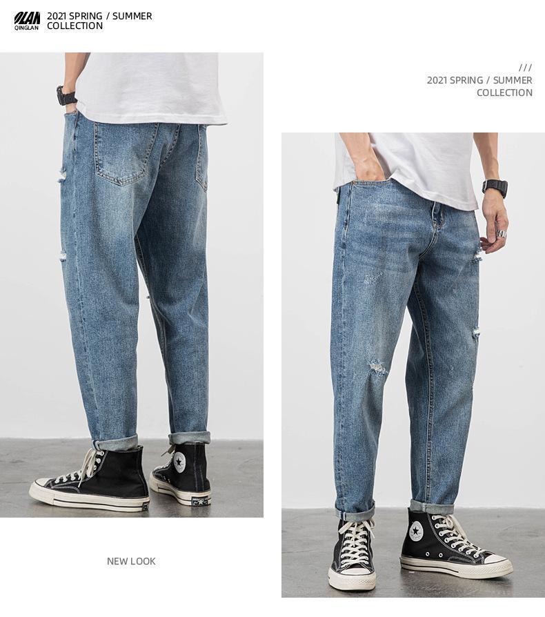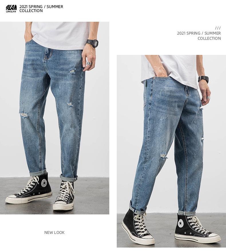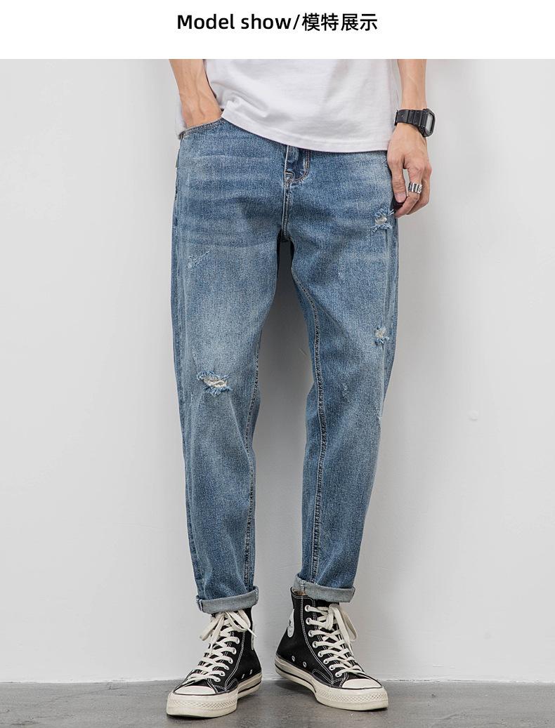 Pantalones vaqueros de verano para hombre, sueltos, rectos, finos, nuevos pantalones cortos de 2023 para niños, pantalones largos casuales de marca de moda que combinan con todo