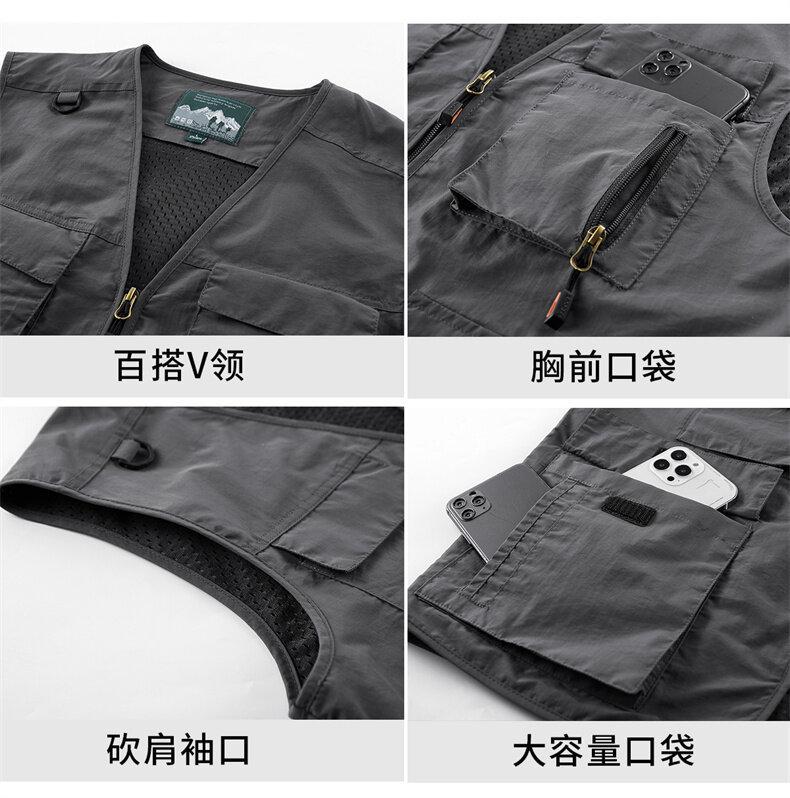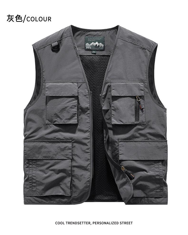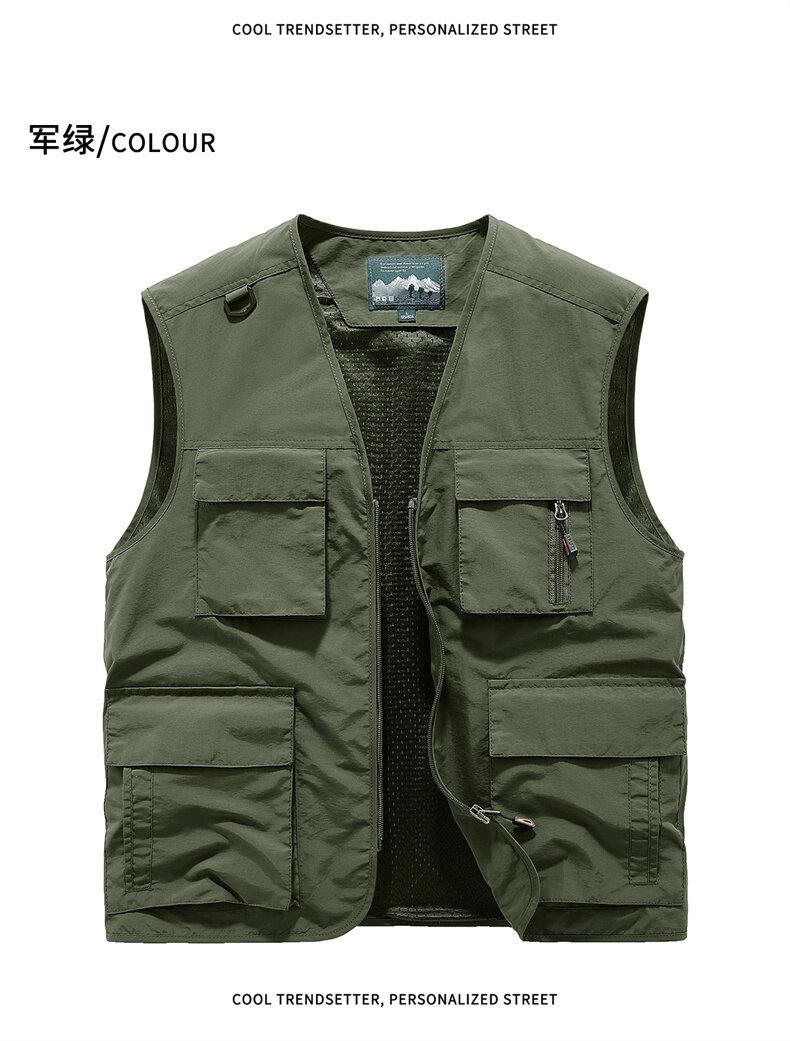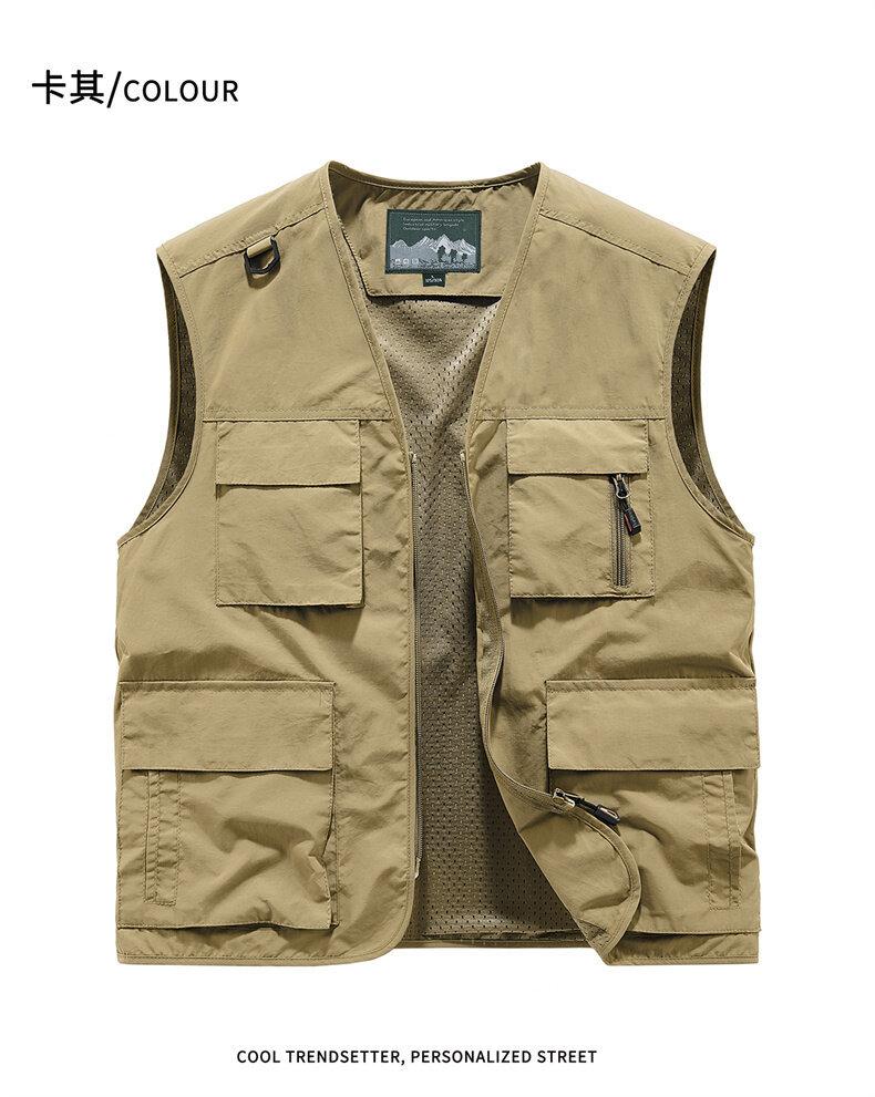 Chaleco informal de verano para hombre, combinable con todo, para trabajo, con cuello multibolsillos, para exteriores y de moda.