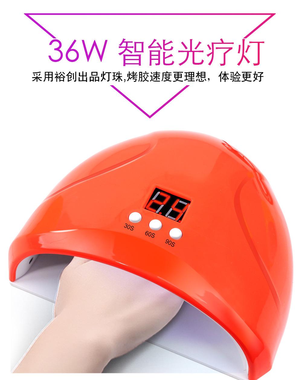 36W de alta potencia, 12 perlas de fuente de luz LED, seca todo el esmalte de uñas, la fuente de luz no daña los ojos, no oscurece las manos, no pica y tiene 3 funciones de temporización. |