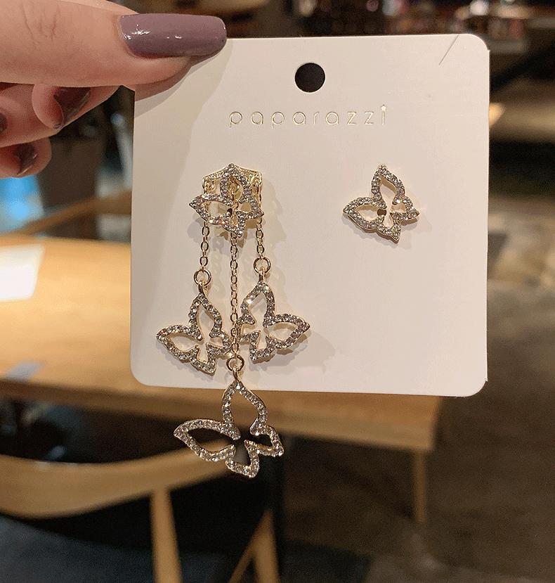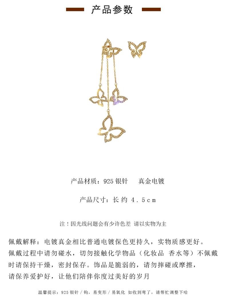 Pendientes de borla de mariposa con aguja de plata S925, pendientes asimétricos con personalidad de hada, nuevos pendientes con personalidad que combinan con todo.