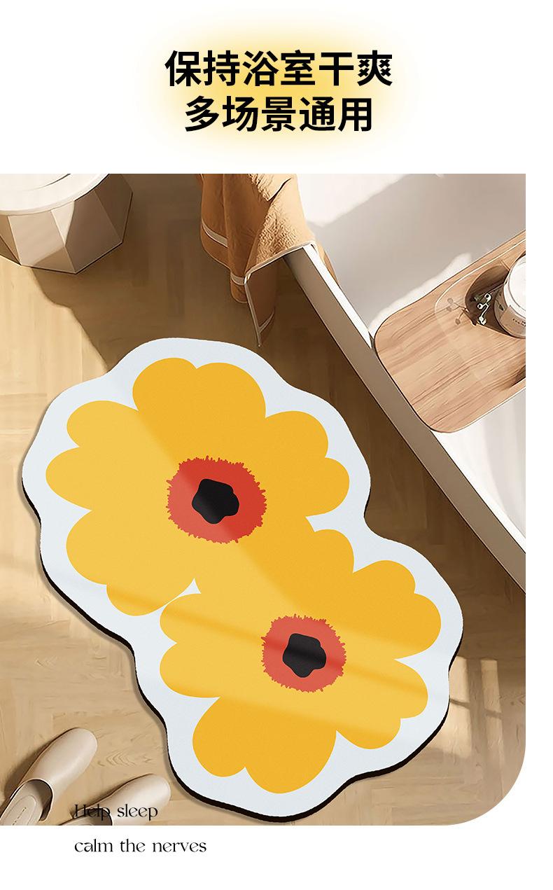 Tapete suave de barro de diatomeas de flor fresca, tapete absorbente antideslizante para baño con forma especial, tapete para puerta de baño para el hogar resistente al desgaste