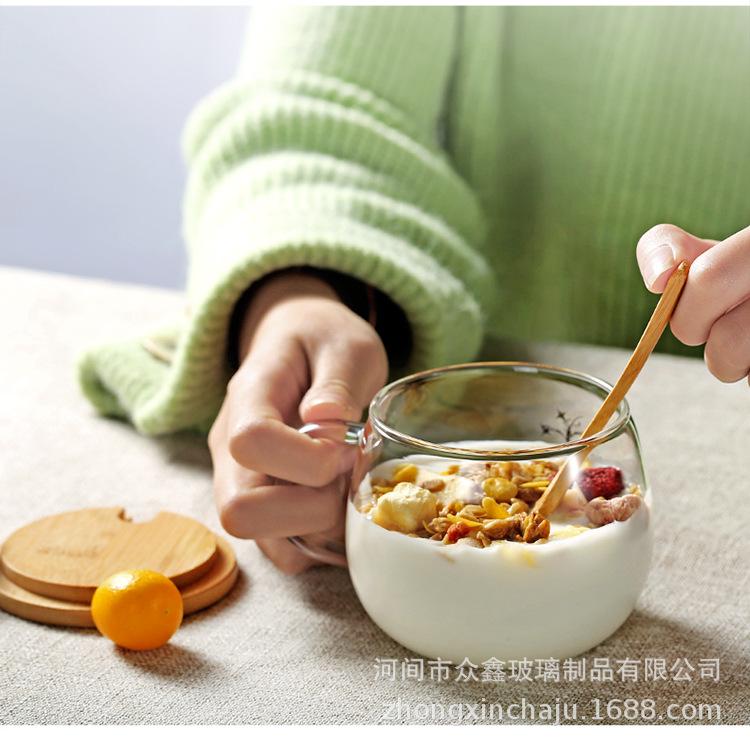 Compra Taza de leche, taza de desayuno, taza de avena doméstica con tapa, cuchara, taza de té con leche de gran capacidad, taza de vidrio, taza de yogur, taza de café al por mayor en Joom.pro