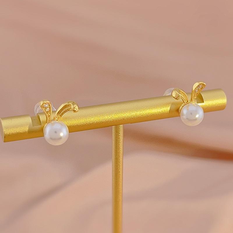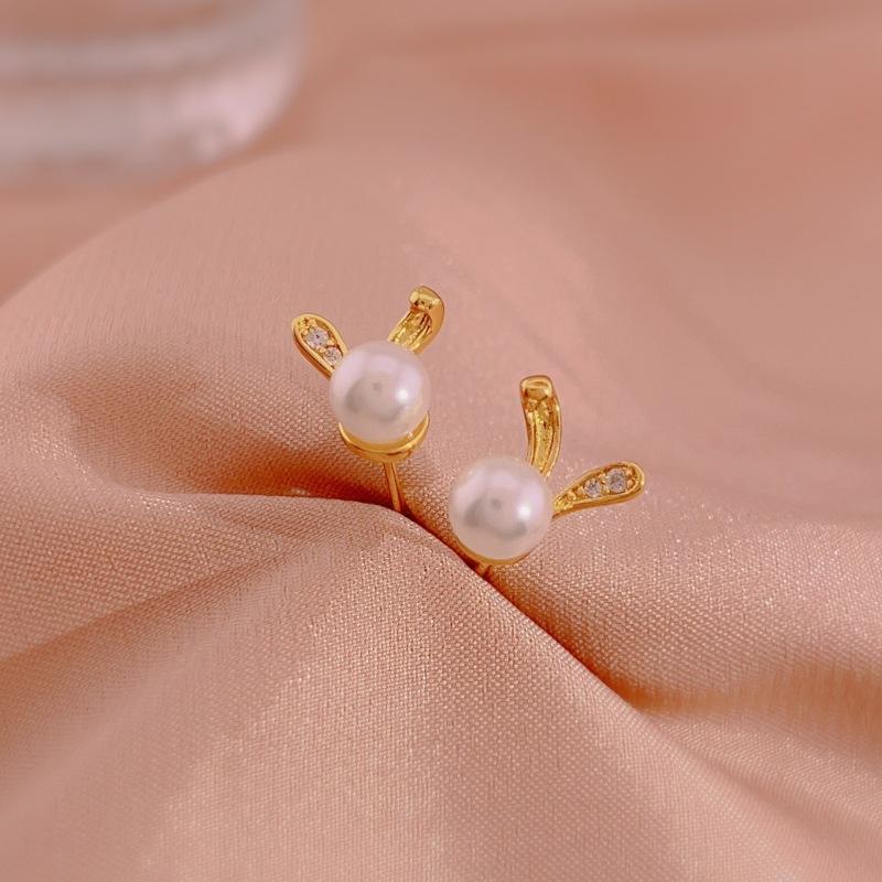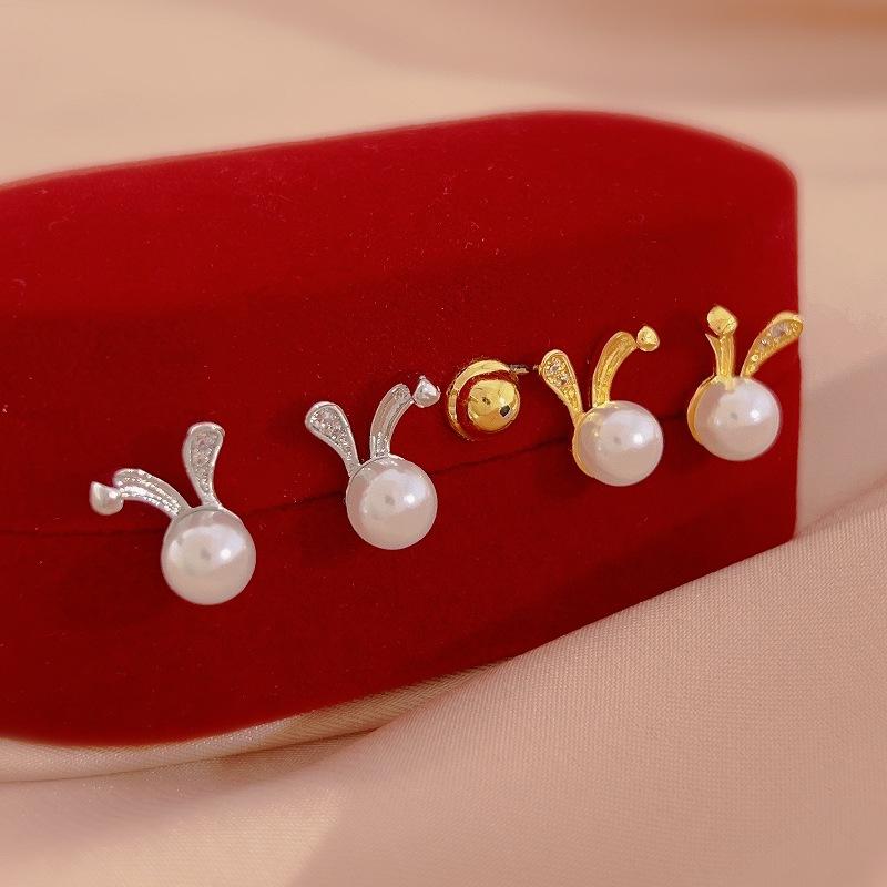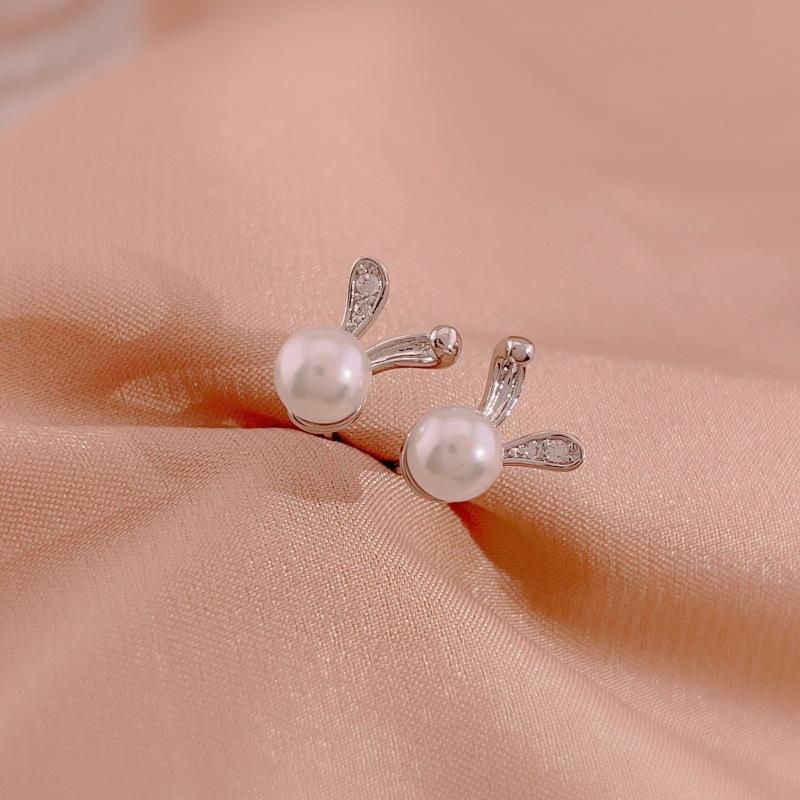 Pendientes de plata s925 con forma de conejito y perla, personalizados, de moda, pequeños y sencillos, con microincrustaciones de circonita.