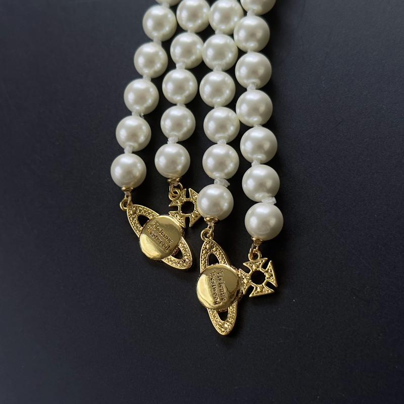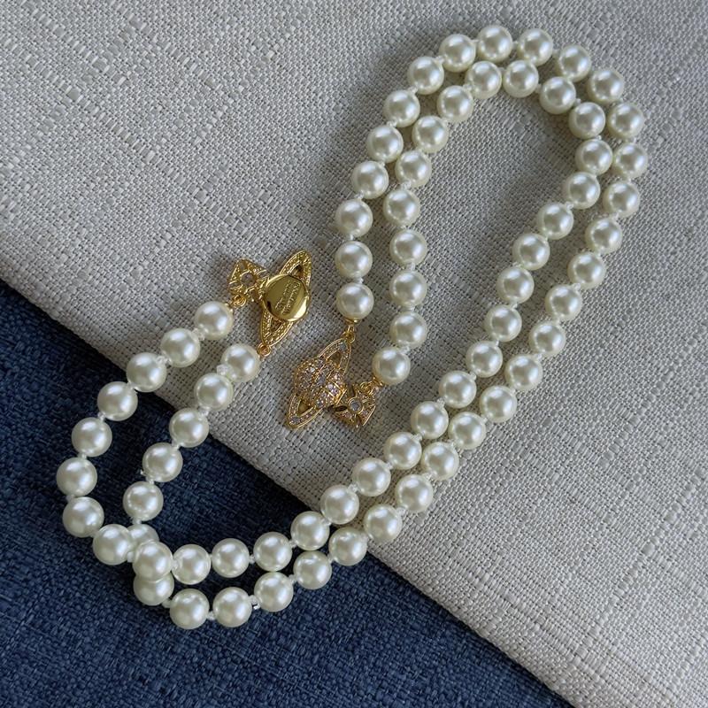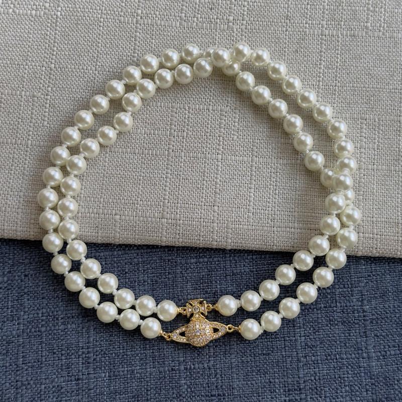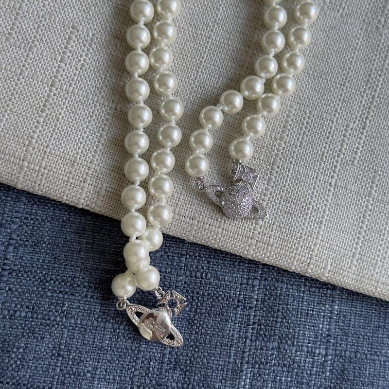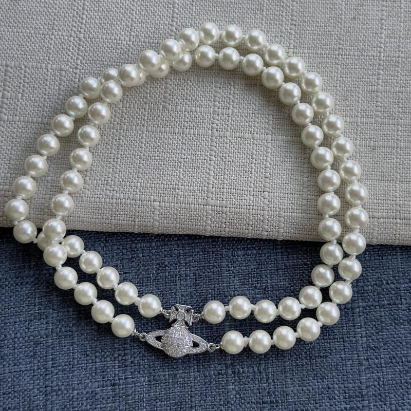 Collar Planeta Doble Perla Diamante Oro Blanco Dorado