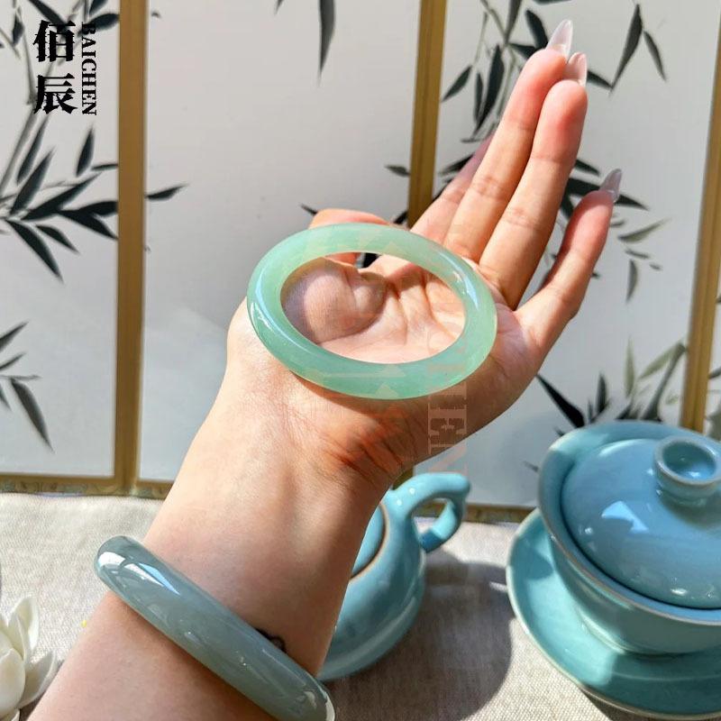 Pulsera de Jade Hetian de Seda Dorada Natural Color Agua Fino Jaspe Tira Plana Jade Dongling Natural Tira Redonda Pulsera Verde