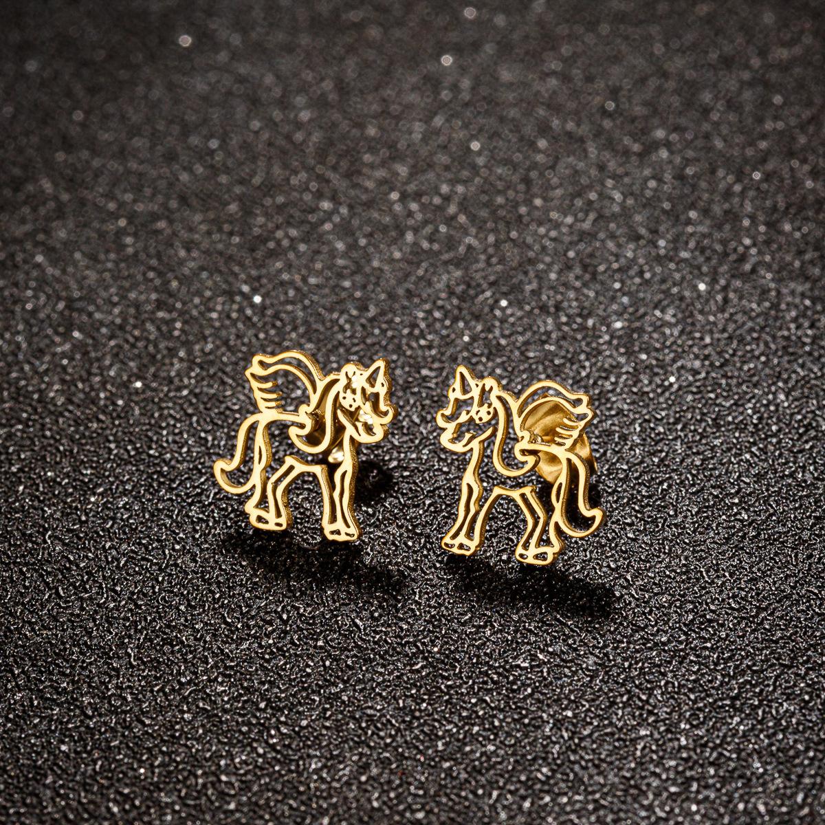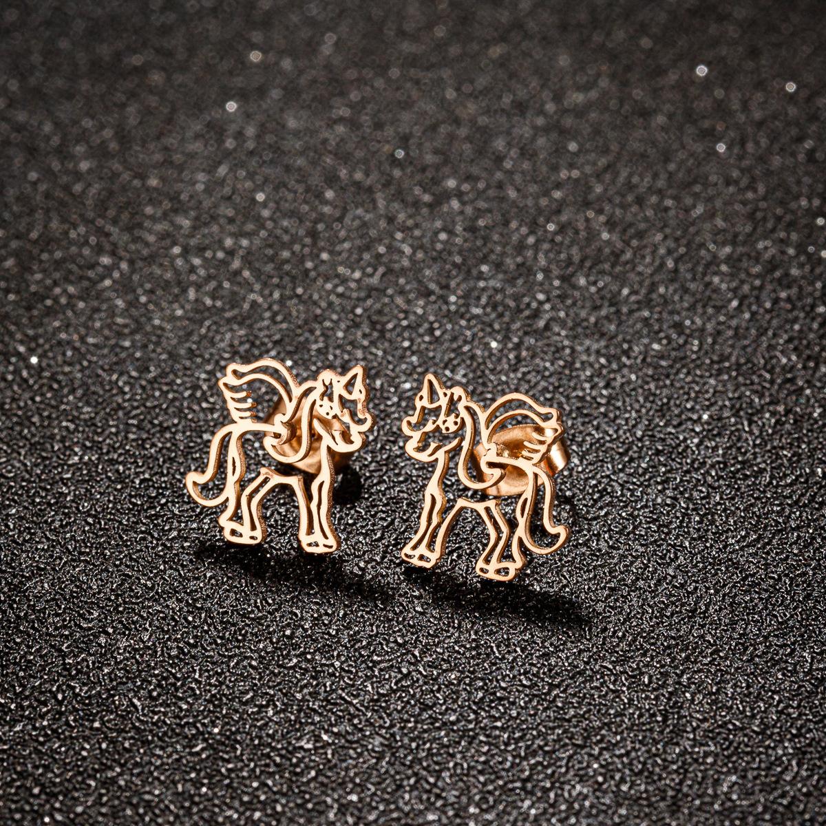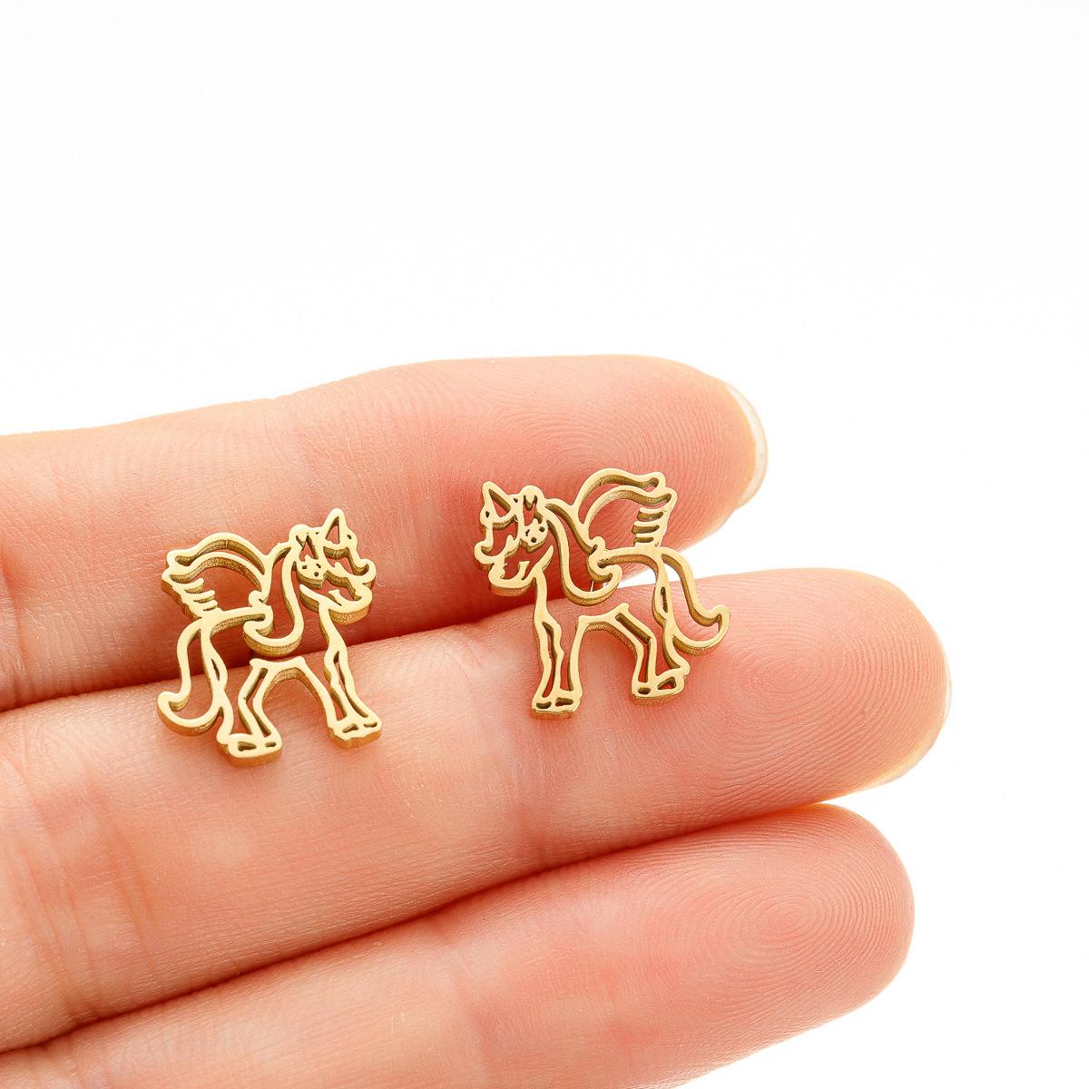 2025 Retro Nuevo Nicho Niñas Acero Inoxidable Casual Dibujos Animados Lindo Alas de Ángel Hueco Aretes de Unicornio