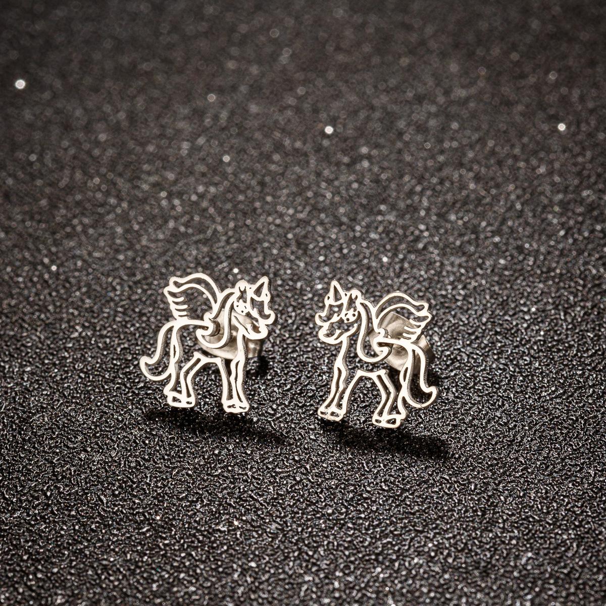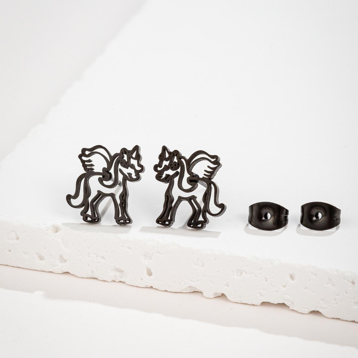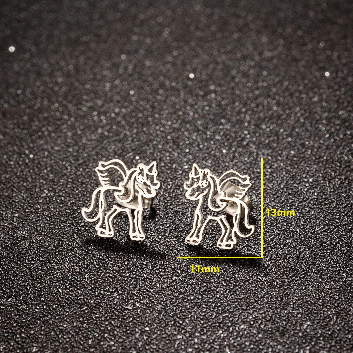 2025 Retro Nuevo Nicho Niñas Acero Inoxidable Casual Dibujos Animados Lindo Alas de Ángel Hueco Aretes de Unicornio