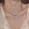 Collar de Anillo de Diamante Estilo Coreano para Mujer Diseño de Alta Gama sin Color Círculo Cadena Clavícula Regalo de Cumpleaños para Novia