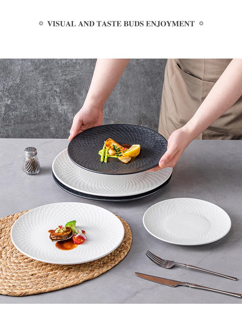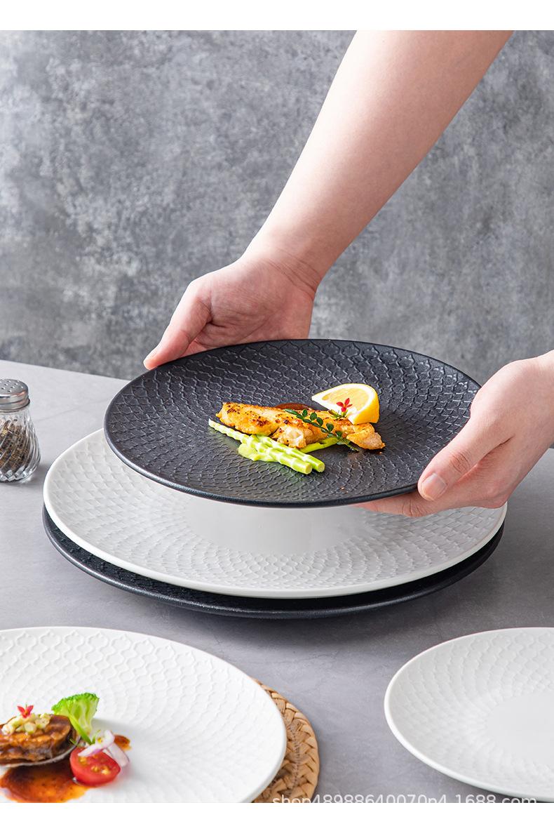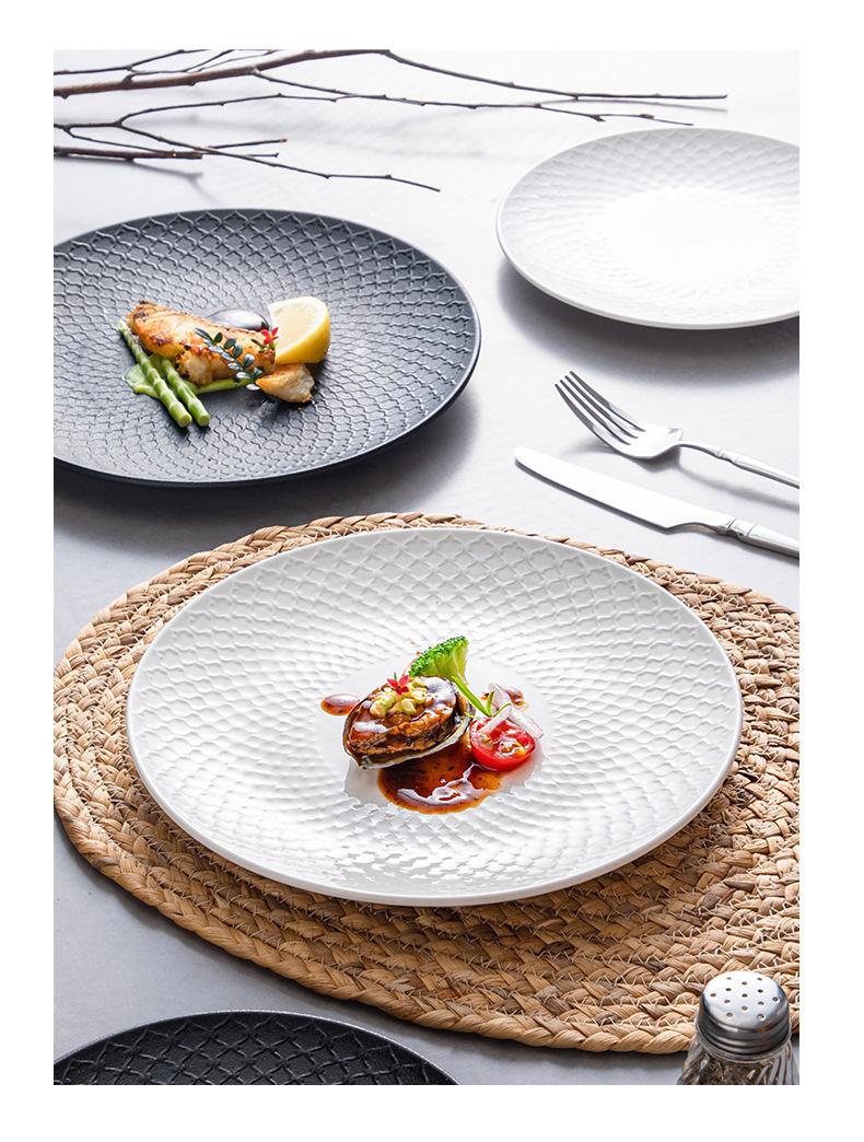 Compra Plato nórdico de alta calidad, plato de carne, plato de cerámica, vajilla de estilo japonés para el hogar, plato plano, plato de comida occidental blanco, ligero y de lujo. al por mayor en Joom.pro