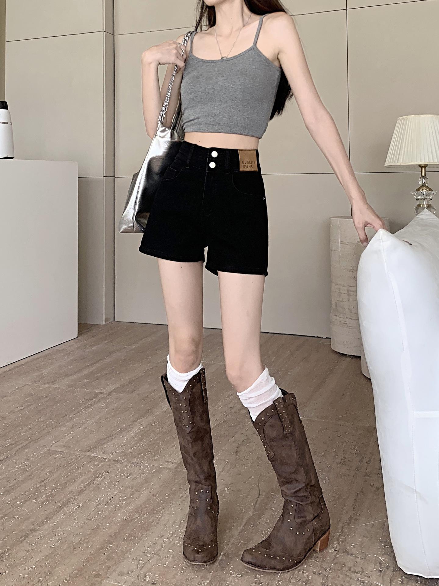 Pantalones cortos vaqueros de verano para mujer, nuevos, de talla grande, regordetes, de cintura alta, adelgazantes, elásticos, con forma de A, pantalones cortos con forma de pera.
