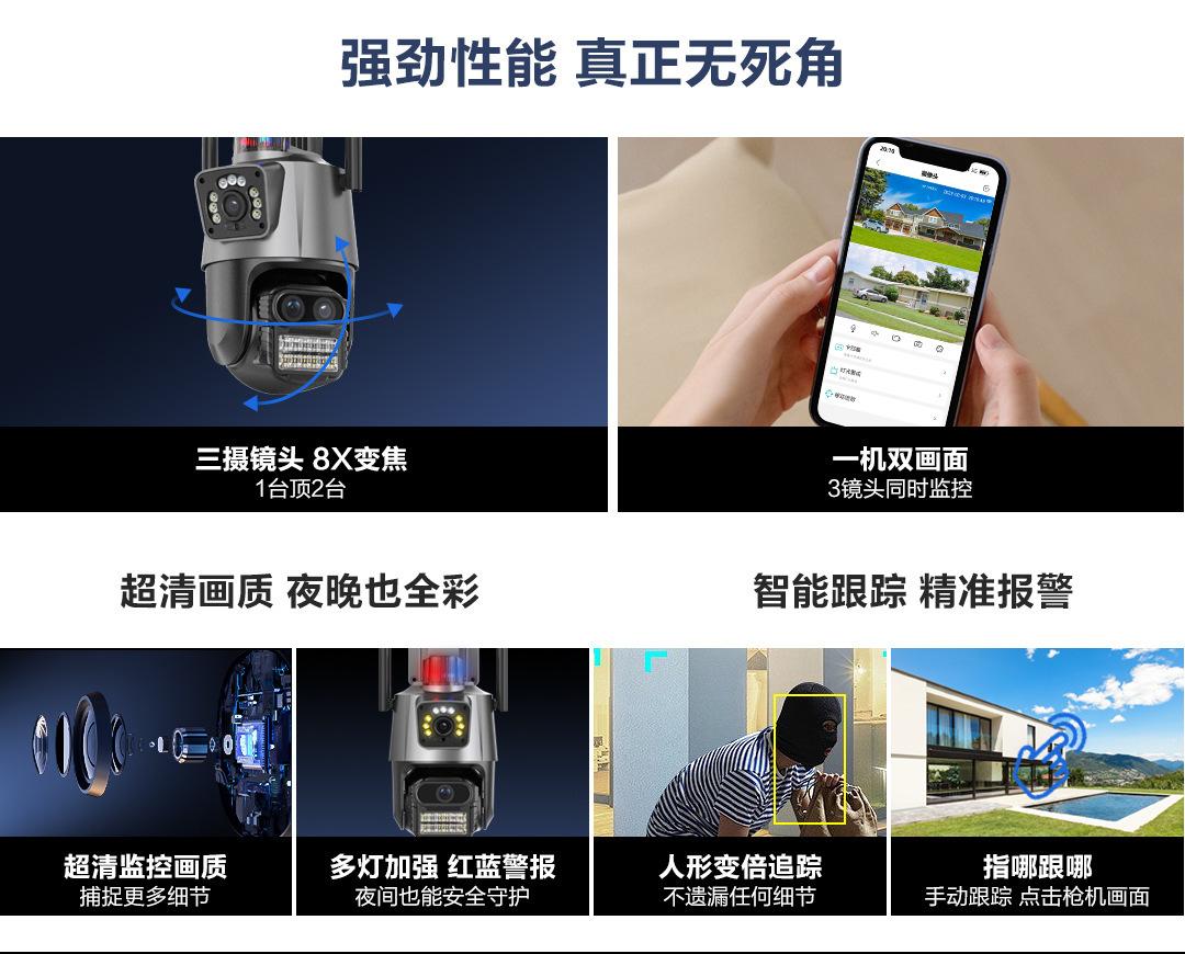 Compra Icsee zoom gun rótula doble lente 6M tres lentes cámara HD cámara de vigilancia inalámbrica ipc al por mayor en Joom.pro