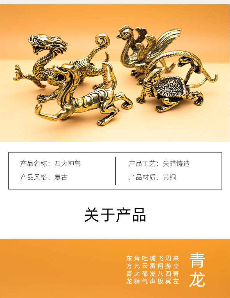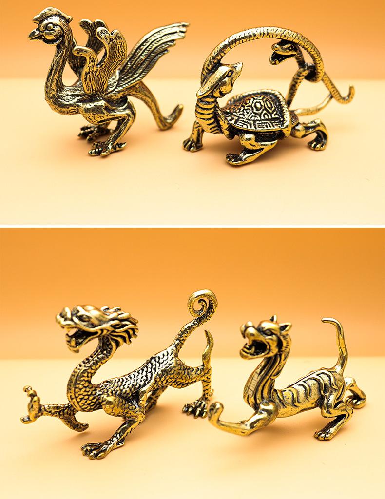 Marea Nacional Dragón Verde Tigre Blanco Pájaro Bermellón Xuanwu Cuatro Bestias Divinas Adornos para el Hogar Ins Latón Antiguo Diy Tortuga Adornos de Cobre