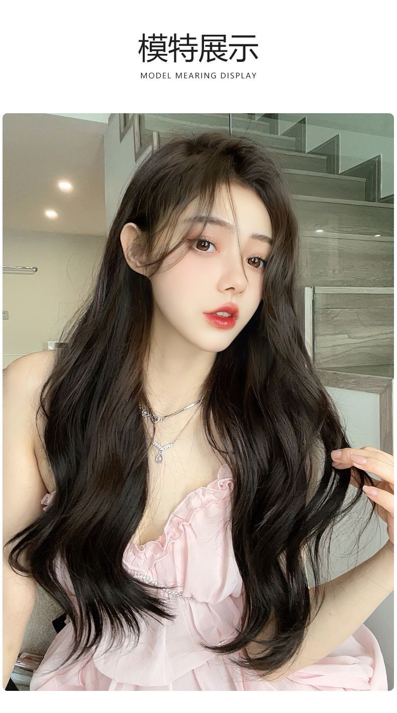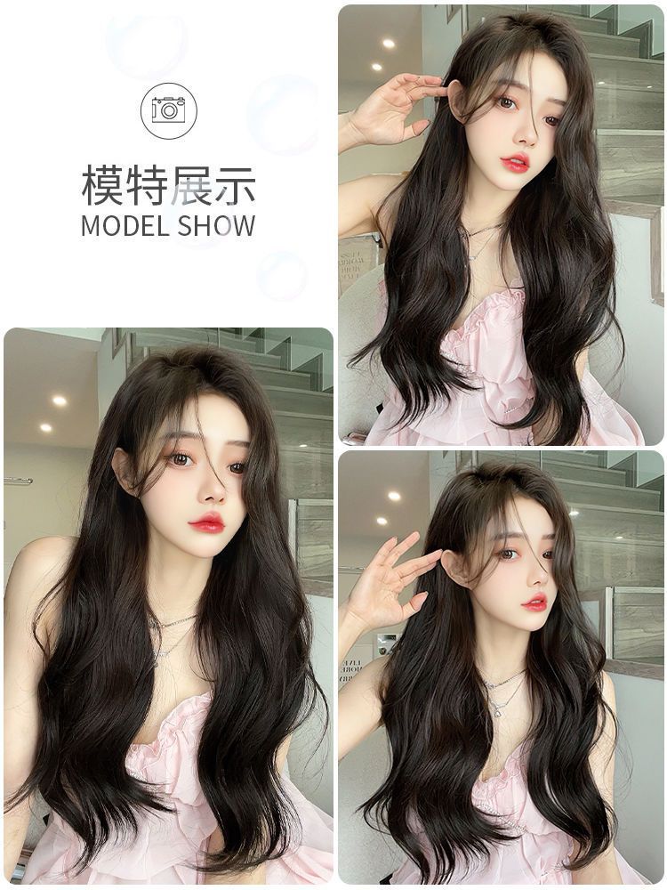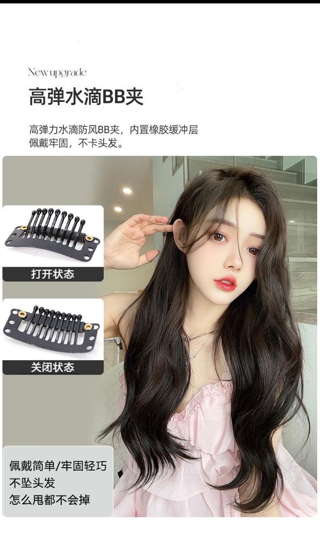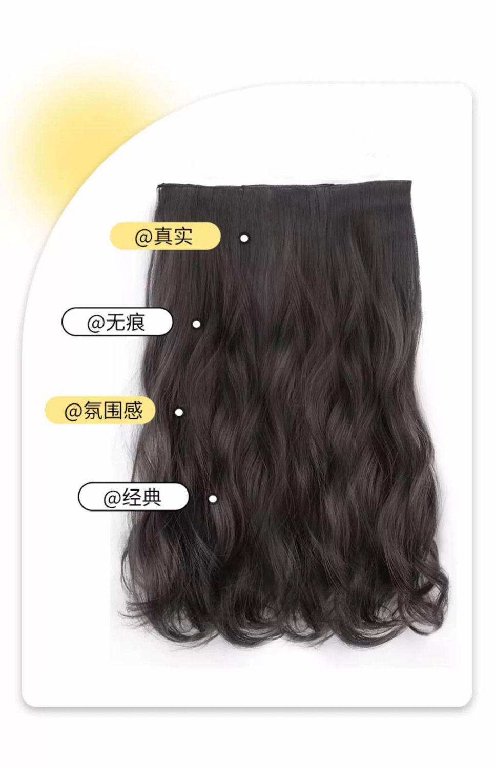 Peluca de mujer de una pieza en forma de V con cabello rizado, simulación de extensión de cabello, lámina natural, sin costuras, esponjosa, ligera, con ondulación de agua.