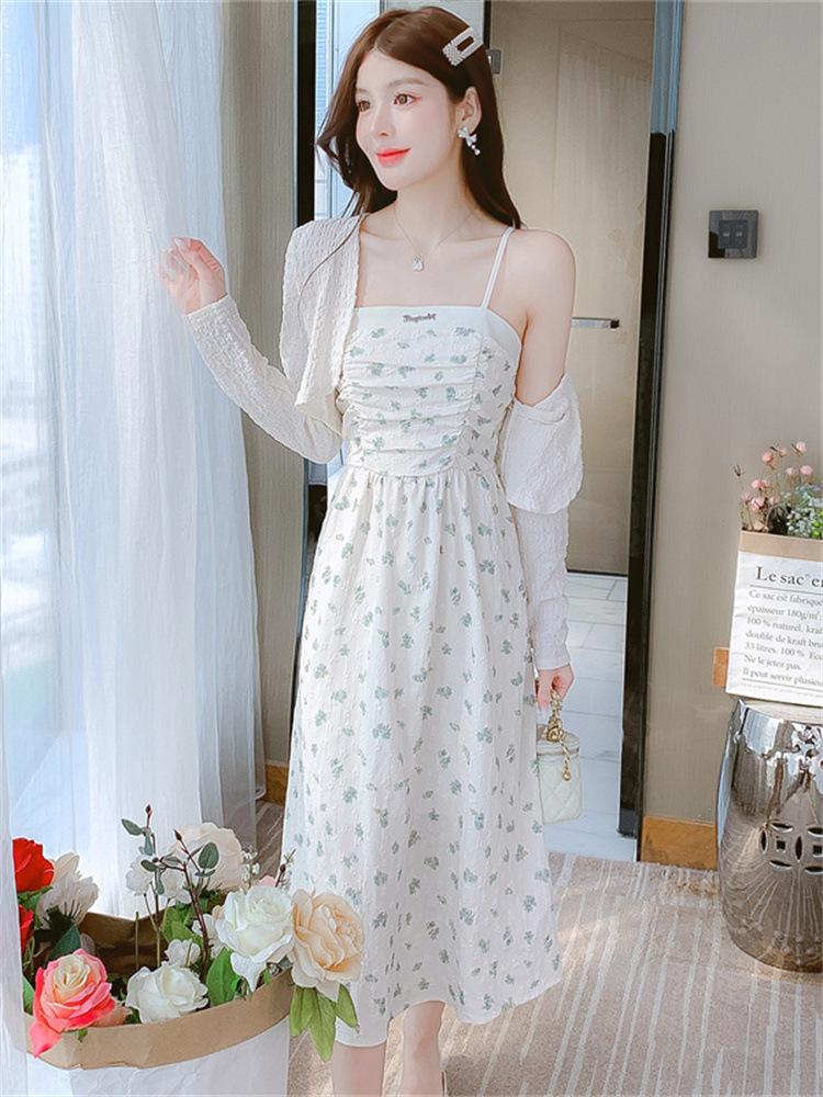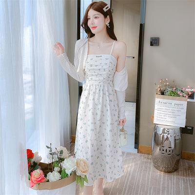 Elegante Vestido de Tirantes Estampado 2024 Verano Nuevo Conjunto de Dos Piezas Venta al por Mayor Estilo Moderno Fresco y Dulce