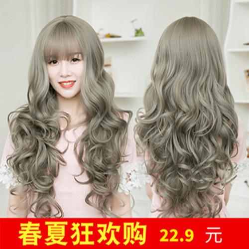 Peluca de moda AliExpress flequillo fino aire cabello largo rizado onda grande esponjosa realista toda la parte superior lote de fábrica